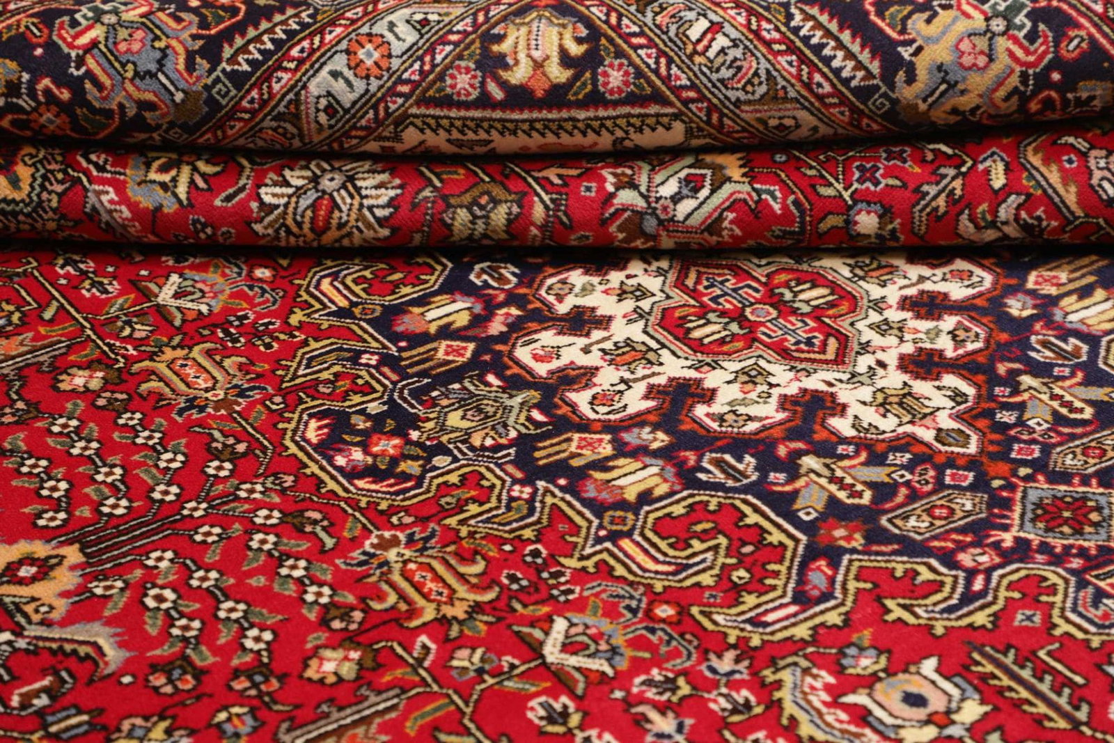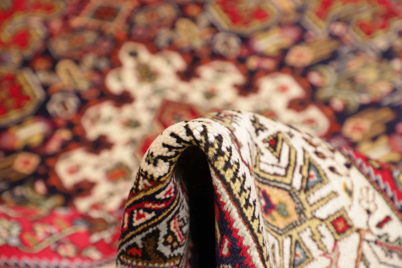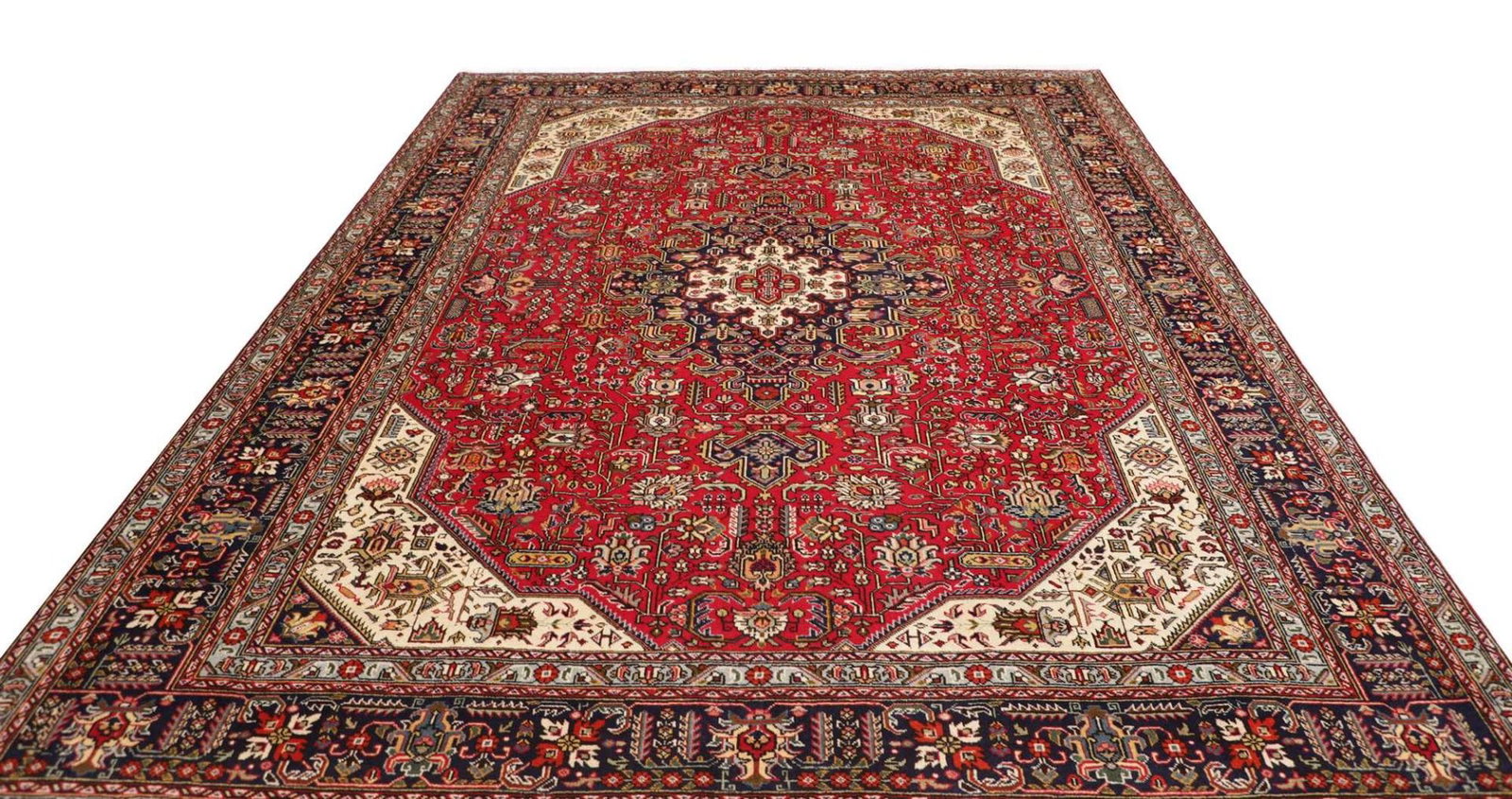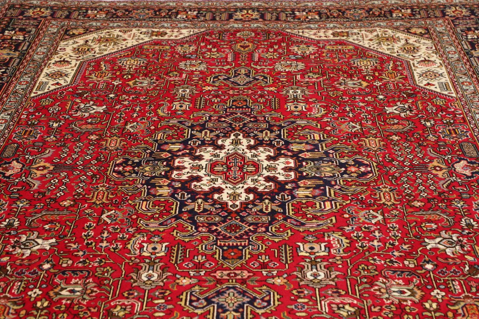 Dieser Teppich stammt aus der legendären Stadt Tabriz im Iran, einer der ältesten und bekanntesten Teppichproduktionsstätten der Welt. Tabriz hat eine lange Geschichte in der Kunst des Teppichknüpfens, die bis ins 15. Jahrhundert zurückreicht. Die Städte und Dörfer der Region sind berühmt für ihre vielfältigen Designs und hochwertigen Materialien. Die traditionsreiche Teppichkunst von Tabriz ist entscheidend für die Identität der Region und spiegelt die kulturellen Einflüsse durch Jahrhunderte hinweg wider. Bei der Anfertigung wird auf symbolische Motive geachtet, die oft Blumen, geometrische Formen oder Tiermotive darstellen und dabei Geschichten von alten Zeiten erzählen.