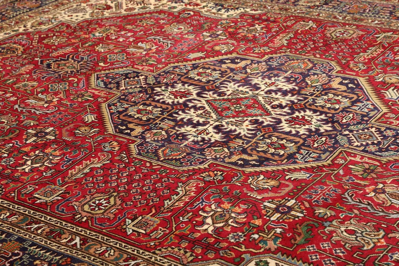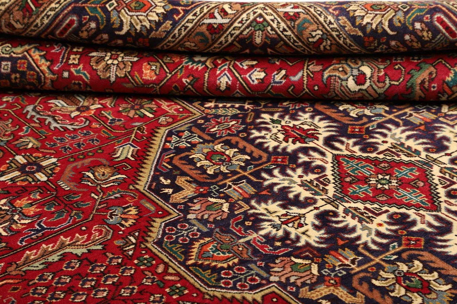 Die Teppiche aus Täbriz sind berühmt für ihre Vielfalt an Mustern und Farben. Oft findet man florale Designs, geometrische Muster und komplexe Medaillons, die alle eine tiefere symbolische Bedeutung haben. Diese Muster erzählen Geschichten und verkörpern die kulturellen Werte und Traditionen der Region.