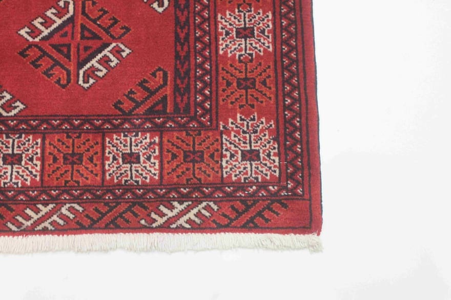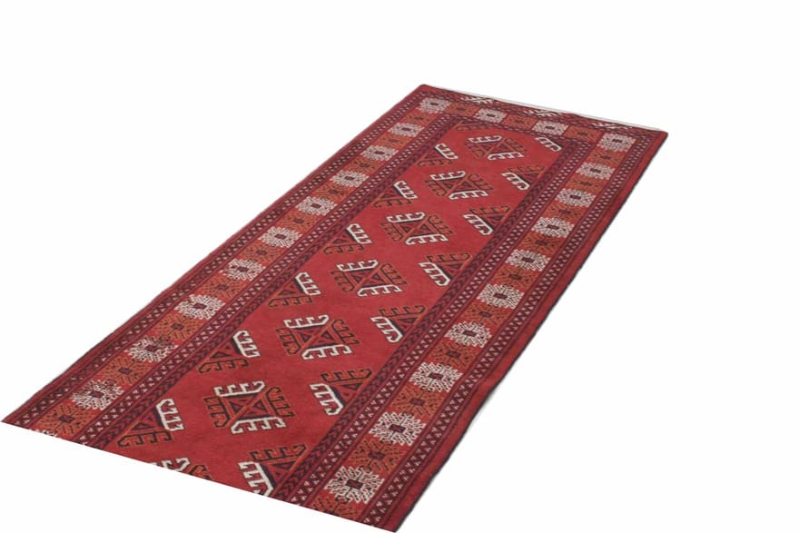 Handgewebter Turkman-Teppich | Knotendichte: 160.000 – 200.000 Knoten/m² | Material: 100 % Wolle | Größe: 279×83 cm | Zustand: Neuzeitlich (0-20 Jahre) | Herkunft: Iran / Persien | Farben: Rot/Orange | Form: Läufer | Pflegehinweise: Regelmäßiges Staubsaugen empfohlen