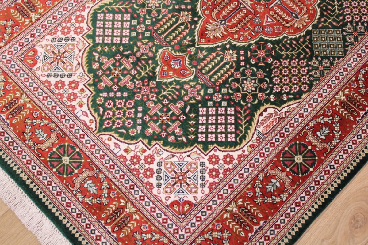 Ghom, im Herzen des Iran gelegen, hat eine lange und ehrwürdige Geschichte der Teppichproduktion. Diese Region ist bekannt für ihre erstklassigen Seidenteppiche, die oft als Kunstwerke angesehen werden. Die Stadt selbst gilt als spirituelles Zentrum und beherbergt eine der wichtigsten Heiligen Stätten des Landes, was die kulturelle Bedeutung der Region weiter steigert.