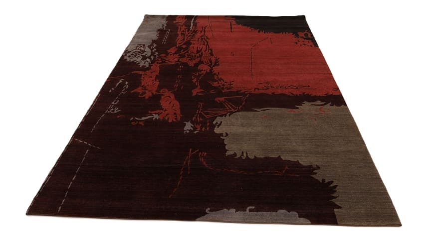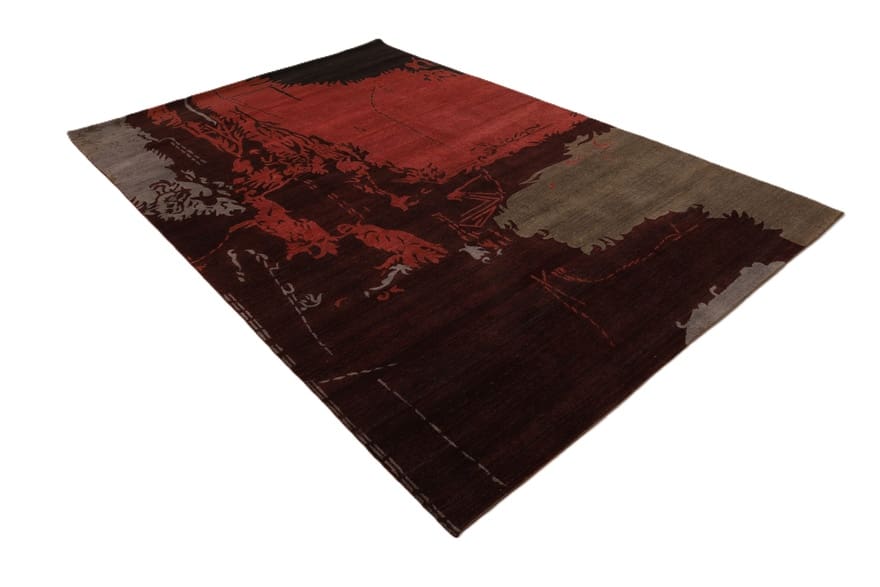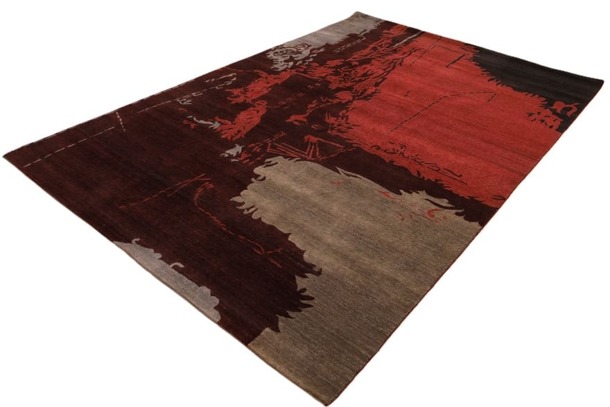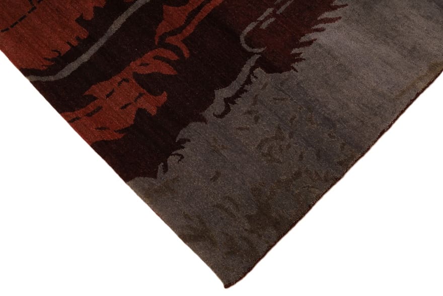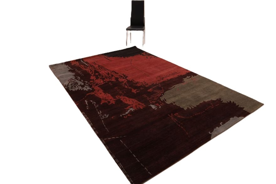 Handgeknüpfter Modern Lotus Teppich | Knotendichte: 200.000 – 250.000 Knoten/m² | Material: Hochwertige Wolle mit Bamboo-Seide | Größe: 305 x 206 cm | Farbe: Intensives Rot und Braun | Zustand: Neu | Ursprung: Indien | Pflegeleicht und strapazierfähig | Einzigartiges, modernes Design
