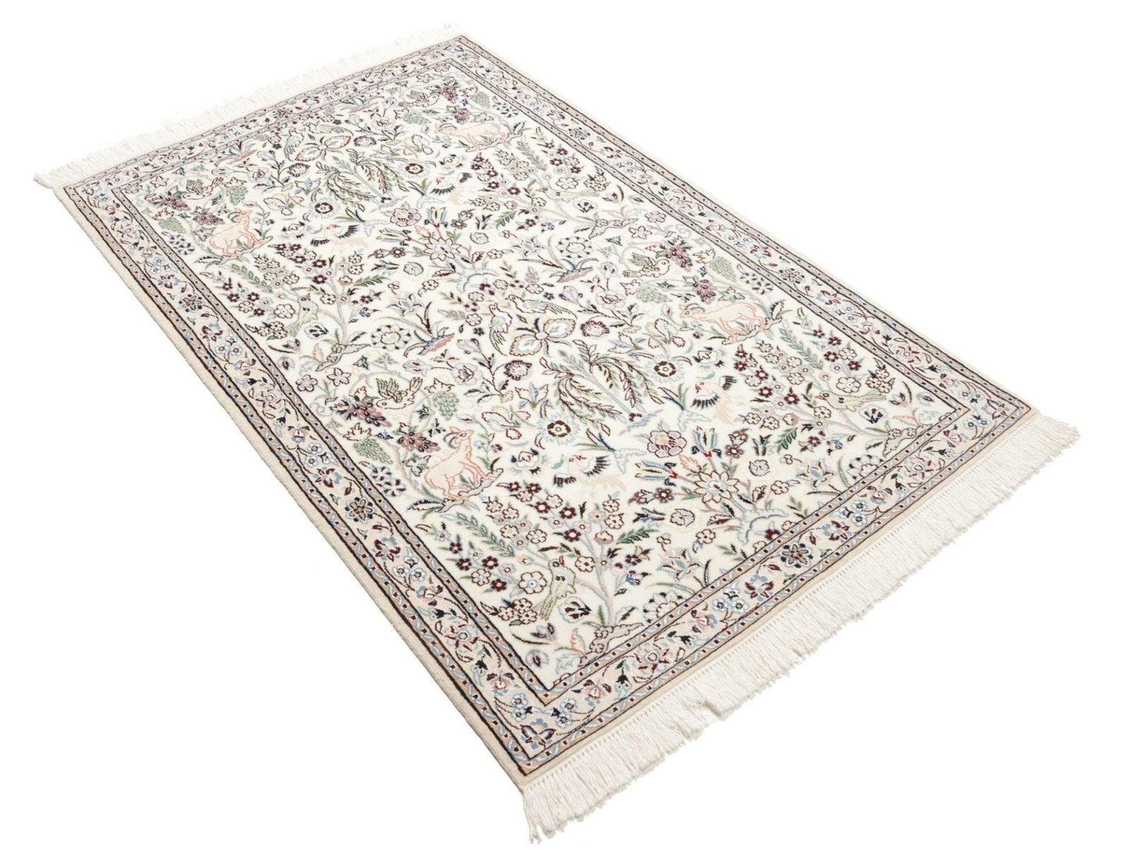 Exklusiver Nain Teppich 106 x 163 cm, florales Muster, handgeknüpft