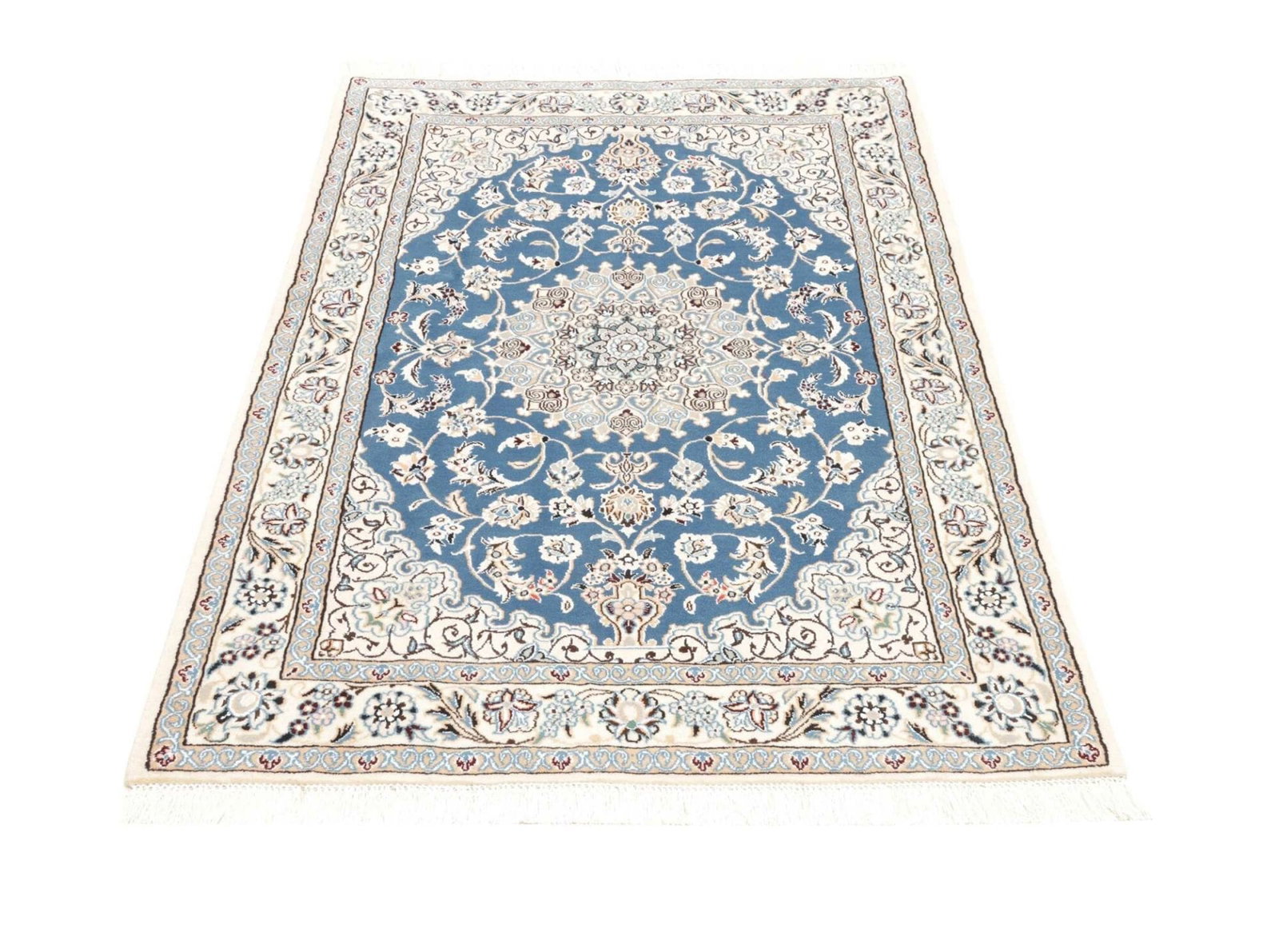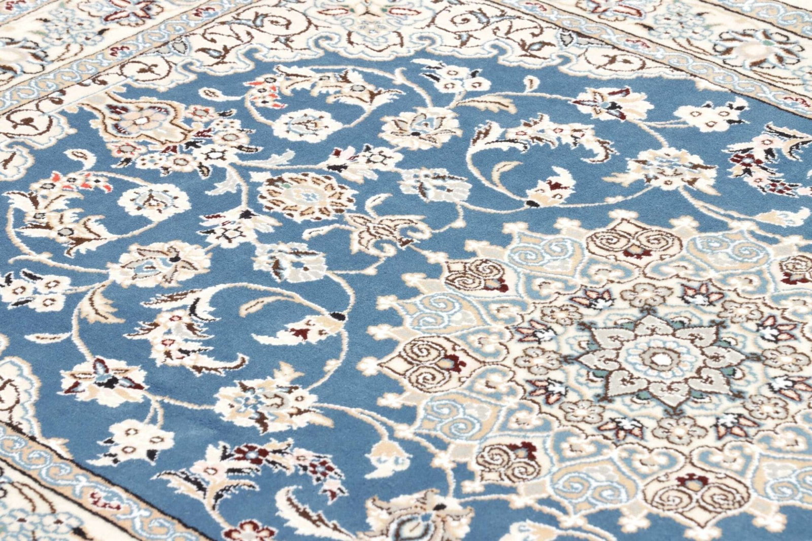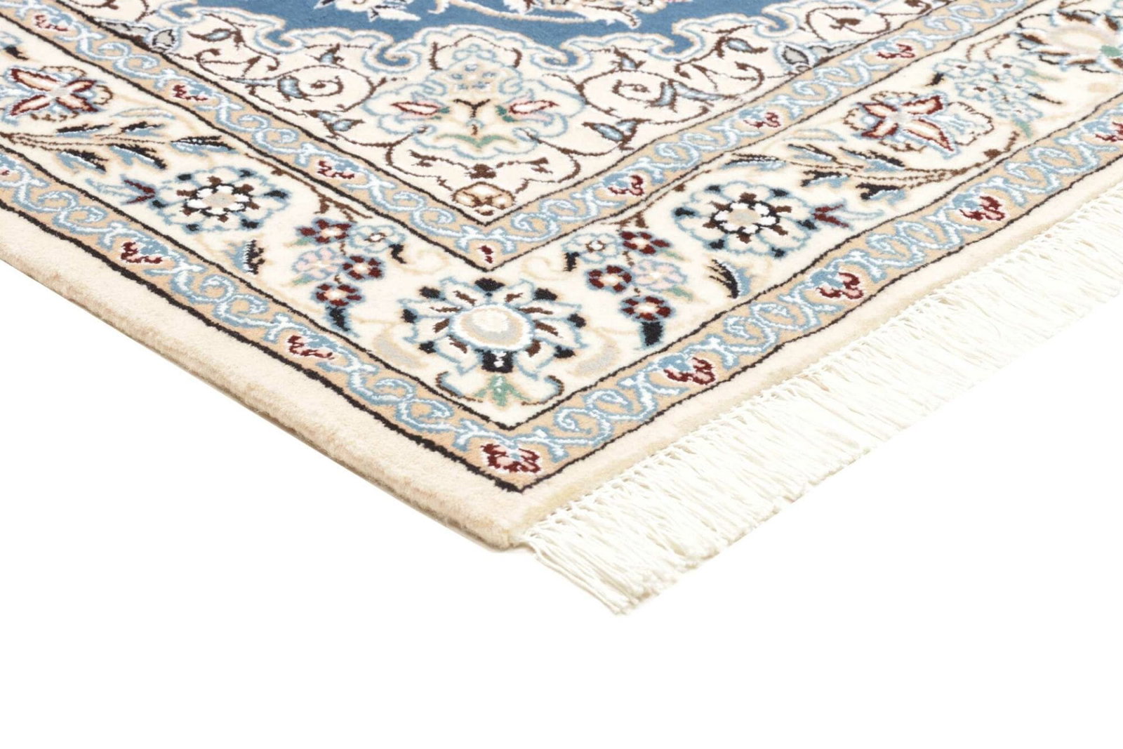 Nain Teppich | Knotendichte: ca. 500.000 Knoten/m² | Material: 100% Schurwolle (Flor), 100% Baumwolle (Kette) | Größe: 107 x 155 cm | Höhe: ca. 10-12 mm | Herkunft: Iran | Handgeknüpfte Qualität | Exklusive florale Musterung