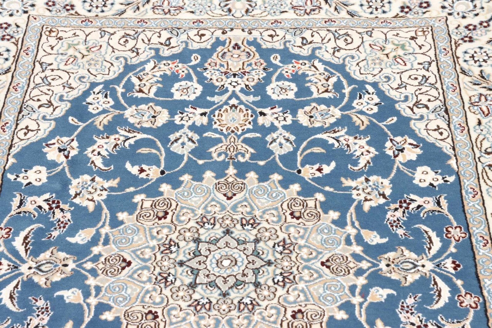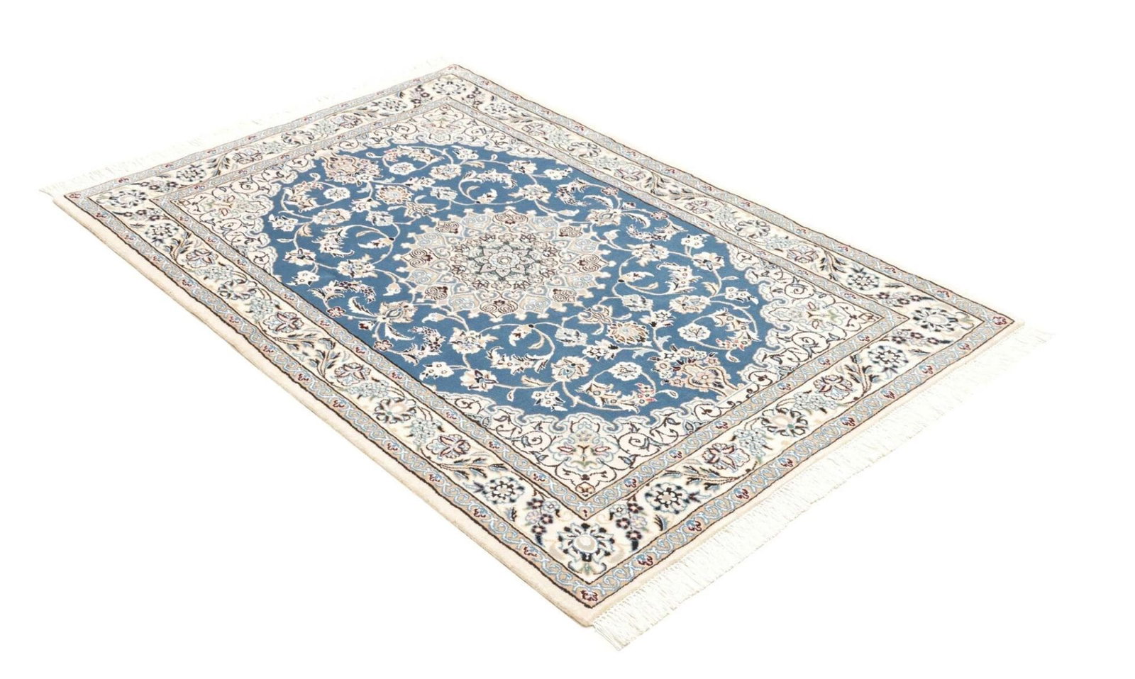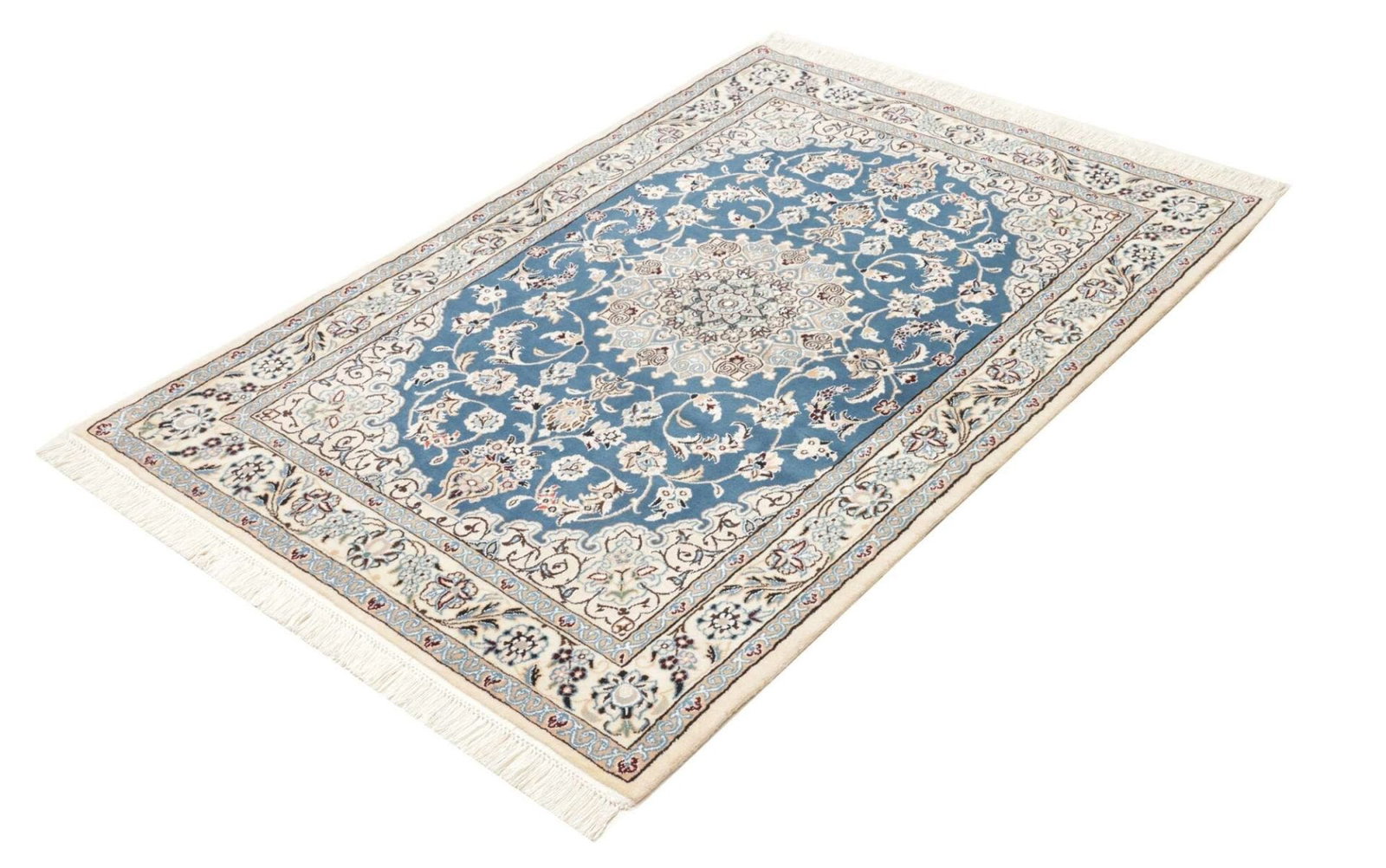 Nain Teppich | Knotendichte: ca. 500.000 Knoten/m² | Material: 100% Schurwolle (Flor), 100% Baumwolle (Kette) | Größe: 107 x 155 cm | Höhe: ca. 10-12 mm | Herkunft: Iran | Handgeknüpfte Qualität | Exklusive florale Musterung