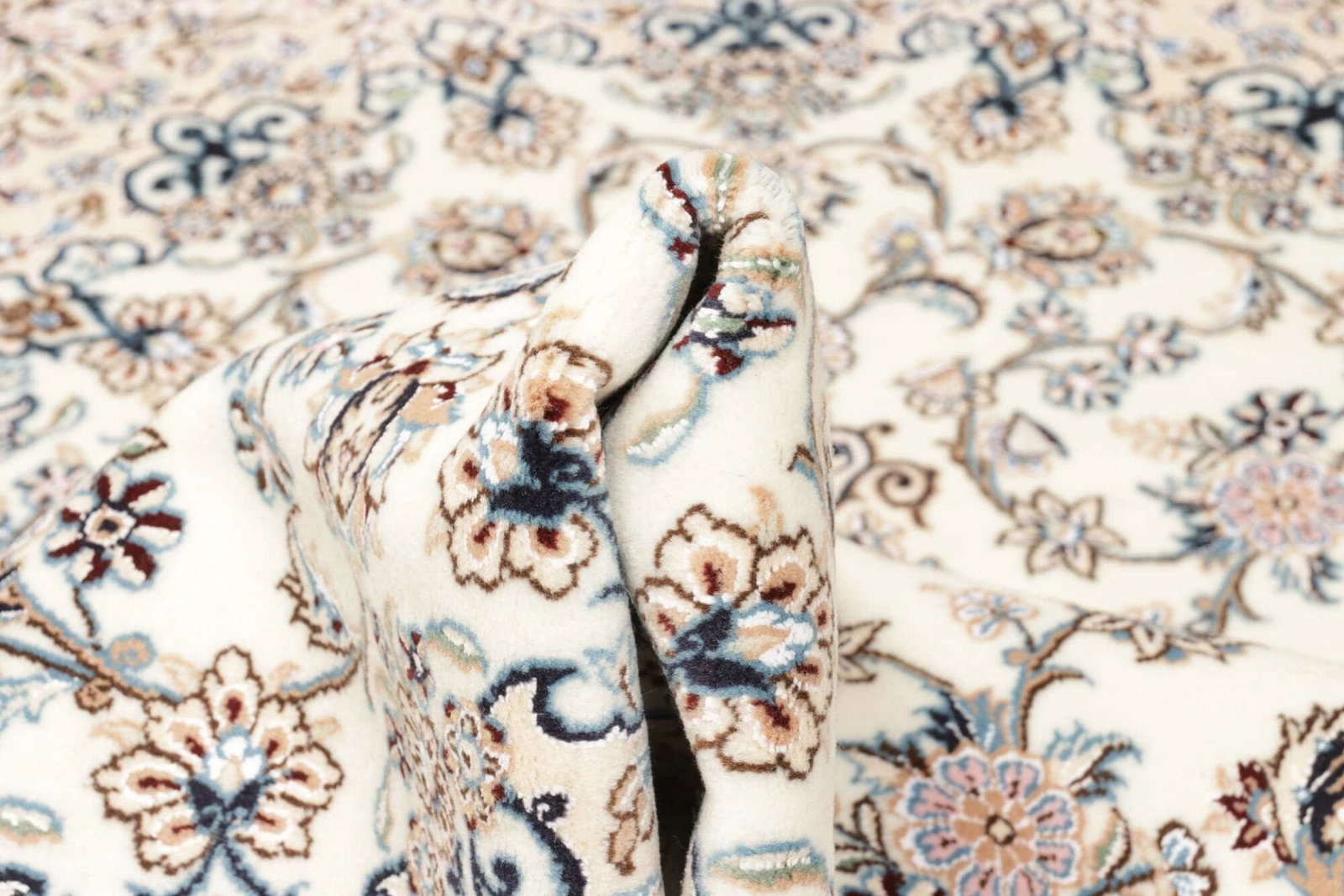 Der exklusive Nain Teppich ist mehr als nur ein Teppich – er ist ein Kunstwerk, das die Tradition und Handwerkskunst des iranischen Teppichknüpfens verkörpert. Mit seinem floralen Muster und der hohen Knotendichte ist dieser handgeknüpfte Teppich nicht nur optisch ansprechend, sondern auch praktisch und langlebig. Investieren Sie in diese stilvolle Bereicherung für Ihr Zuhause und genießen Sie den Flair des Orients.