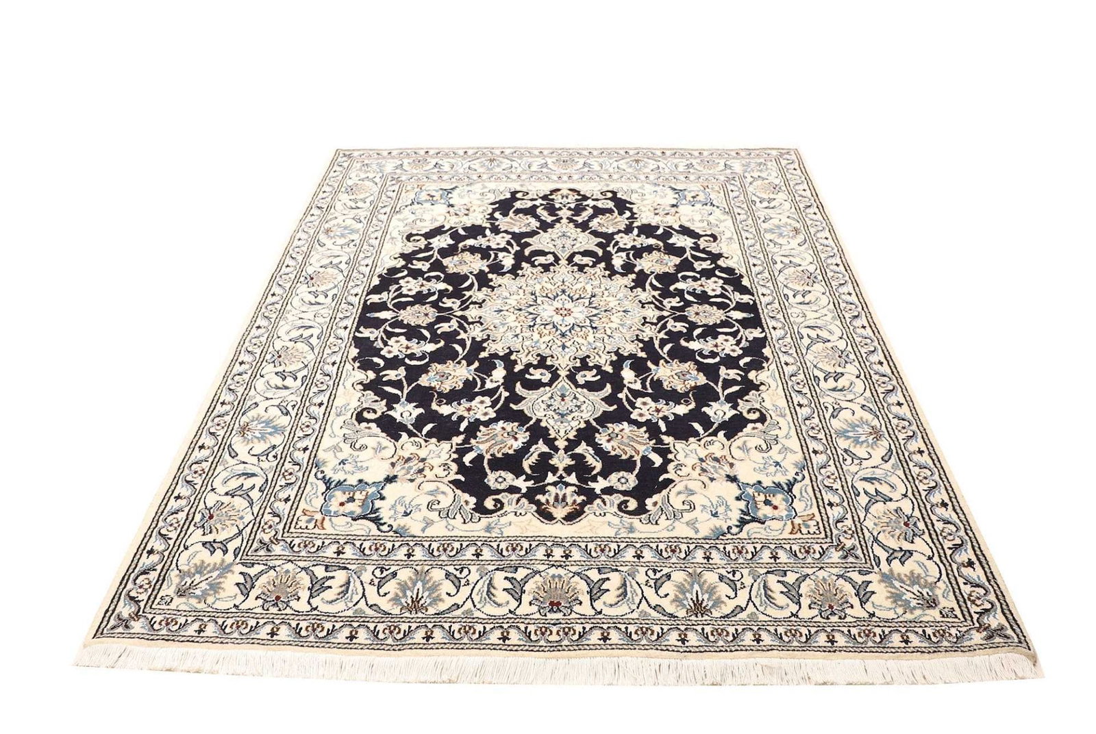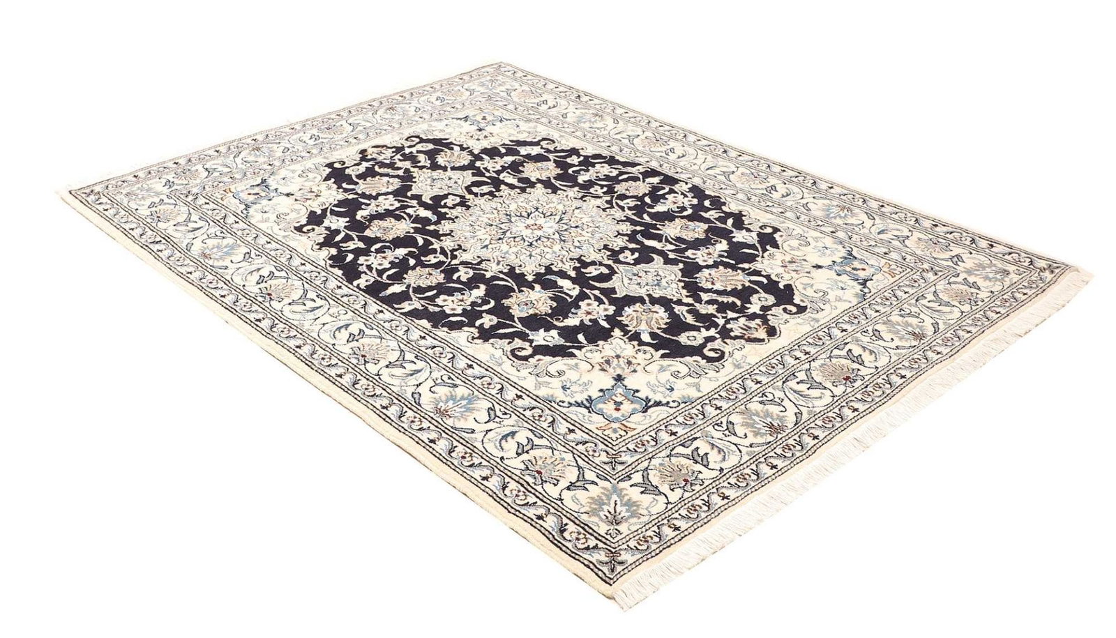 Exklusiver Nain Teppich 155 x 202cm, florales Design, handgeknüpft