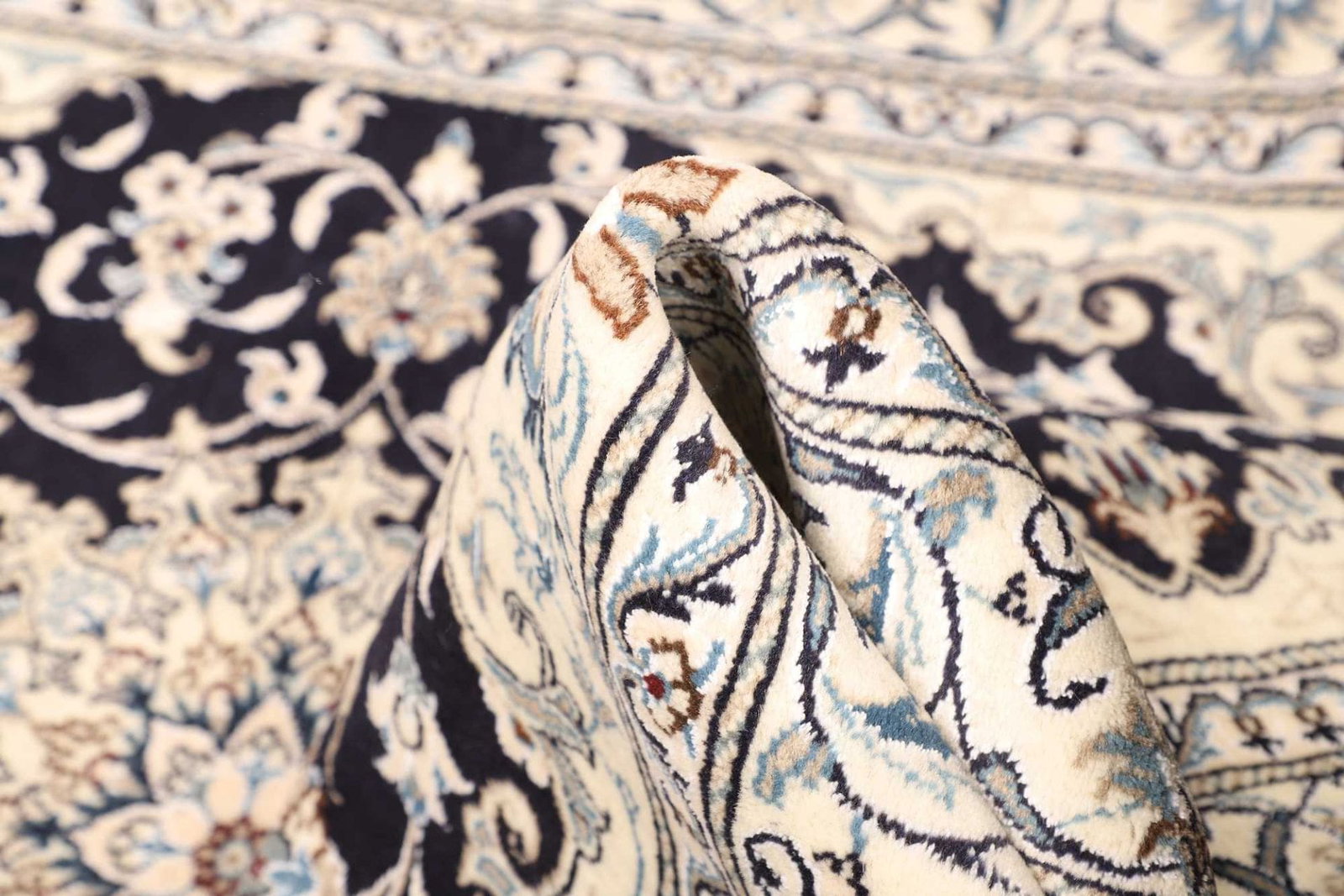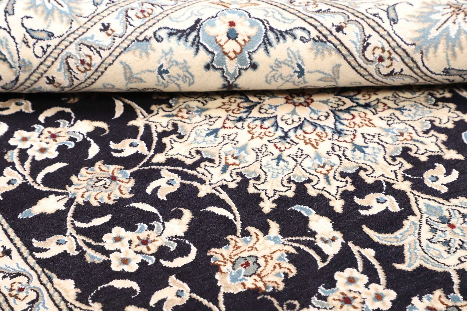 Das florale Design dieses Nain Teppichs ist sowohl zeitlos als auch modern und fügt sich nahtlos in verschiedene Wohnstile ein – von klassisch bis modern. Die ausgeklügelten Blütenmuster sorgen für eine harmonische Atmosphäre, während die Farben sorgfältig ausgewählt wurden, um sowohl Helligkeit als auch Eleganz auszustrahlen. Twilight-Blau, sanftes Beige und tiefes Rot sind typische Farbtöne, die häufig in Nain Teppichen vorkommen und in jedem Raum eine wohlige Wärme schaffen.