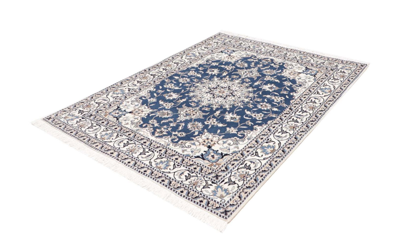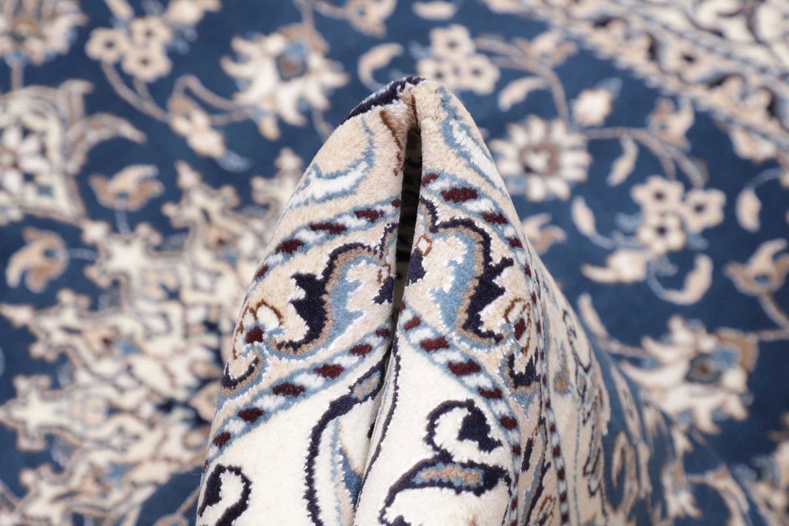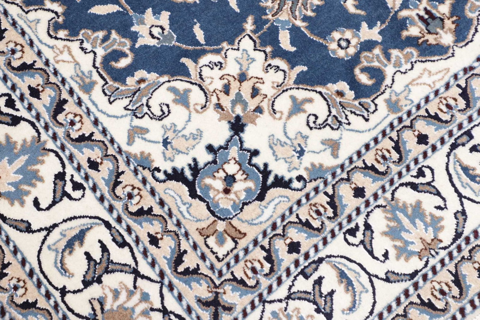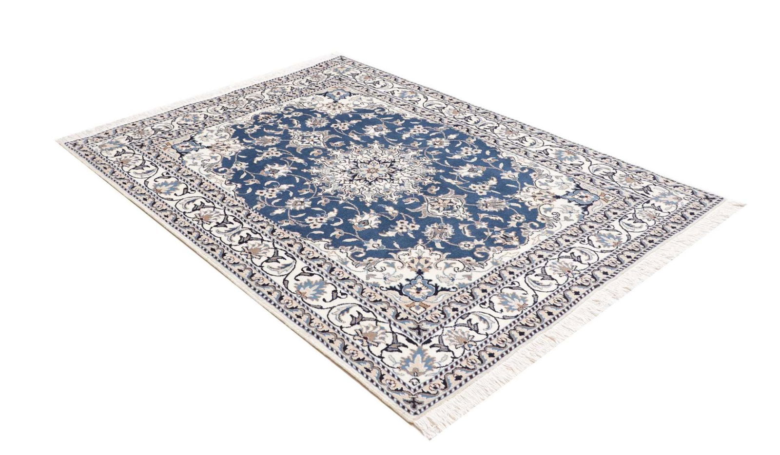 Ein typisches Merkmal der Nain Teppiche ist die Verwendung von blau- und beigetönen, die ihnen ein elegantes und edles Aussehen verleihen. Dieses zeitlose Design passt zu verschiedenen Einrichtungsstilen, von klassisch bis modern, und macht den Teppich zu einem vielseitigen Gestaltungselement.
