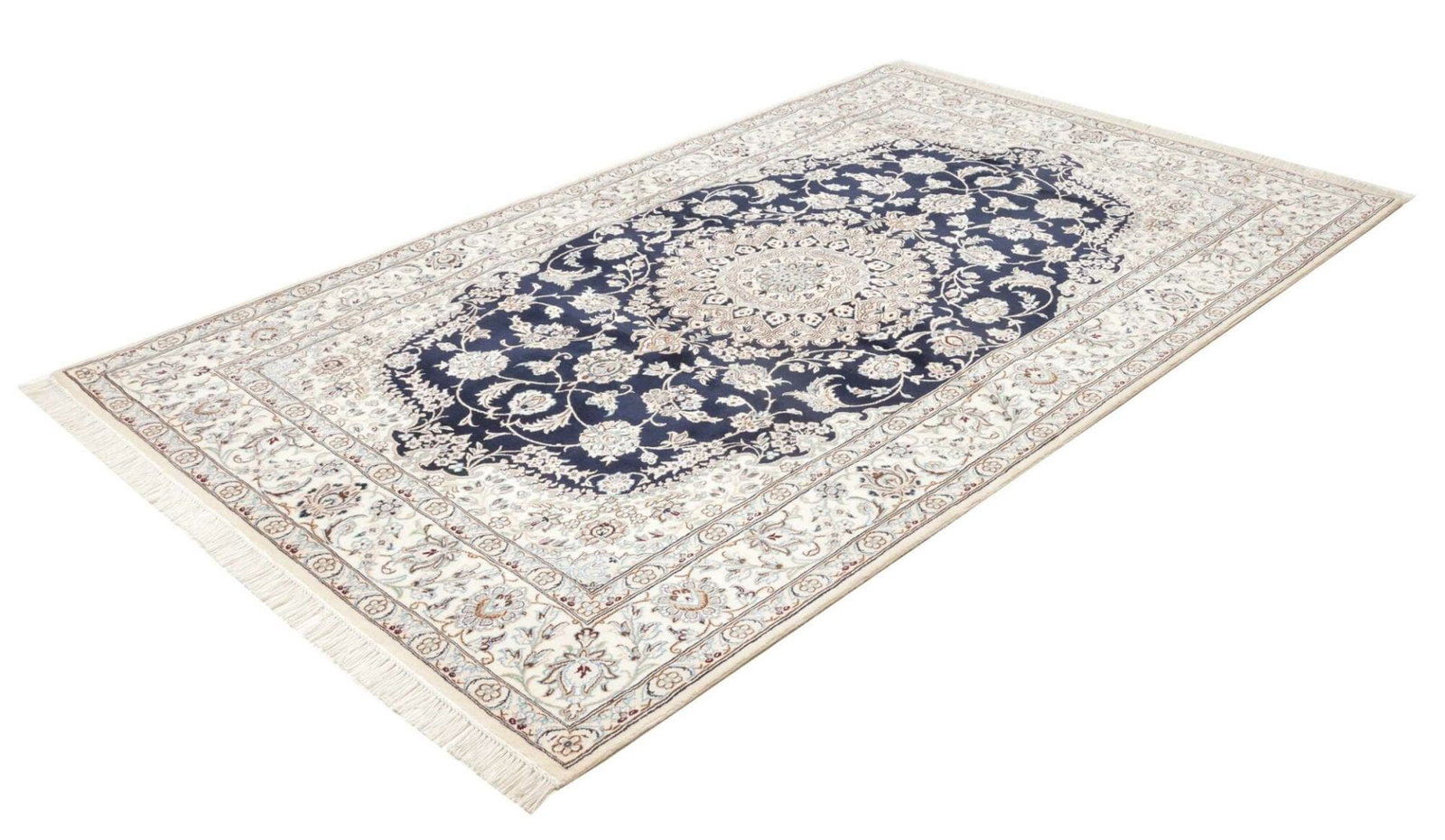 4128$Ursprünglicher Preis war: 4128$3088$Aktueller Preis ist: 3088$Nain Teppich | Knotendichte: ca. 500.000 Knoten/m² | Material: 100% Schurwolle (Flor) und 100% Baumwolle (Kette) | Größe: 159 x 253 cm | Handgeknüpfte Qualität | Herkunft: Iran | Muster: Klassische florale Motive | Höhe: ca. 10-12 mm | Zustand: Exzellente Verarbeitung