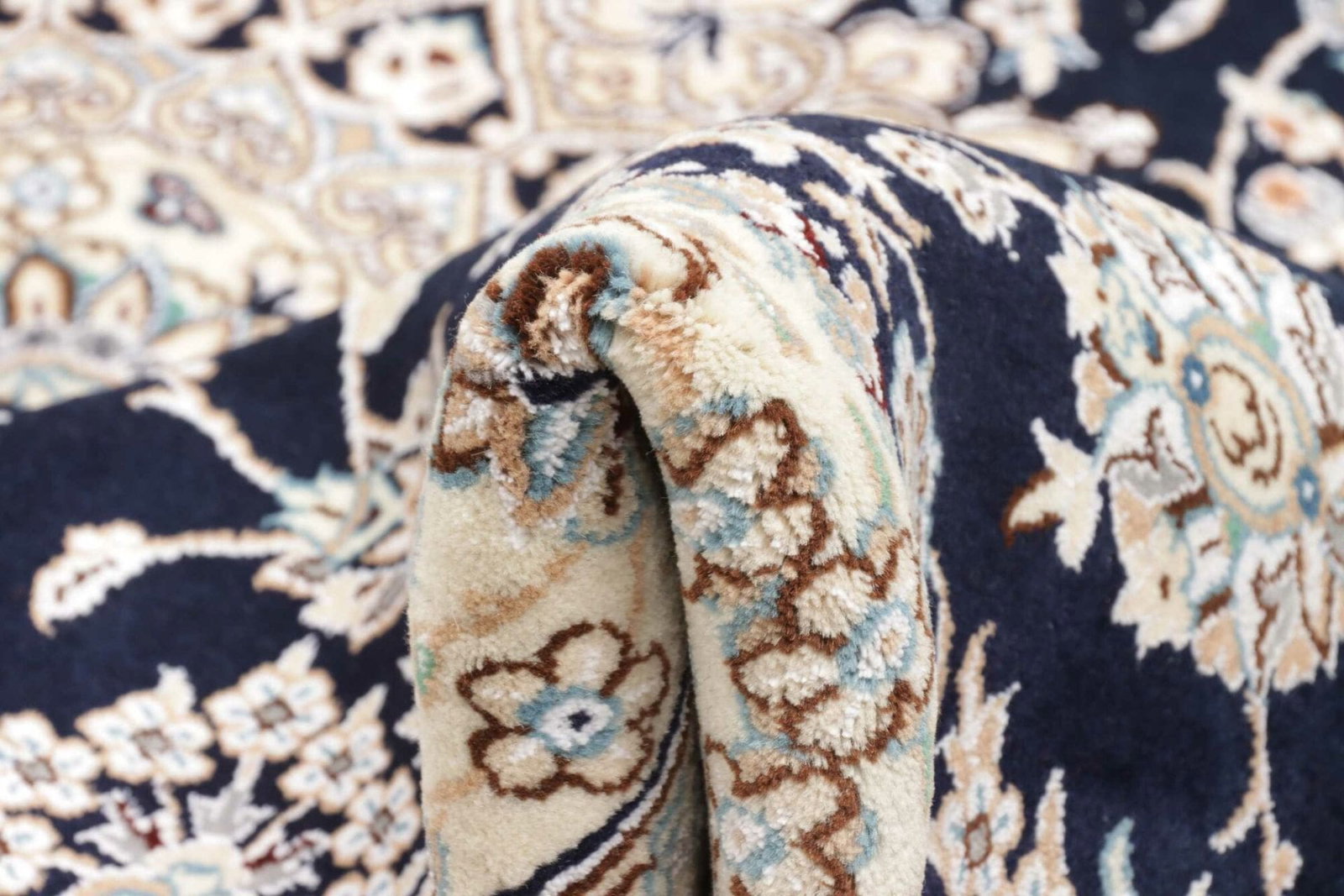 Der Nain Teppich besticht durch seine hochwertigen Materialien. Gefertigt aus feinster Wolle und Baumwolle, vereint er Robustheit mit luxuriösem Komfort. Die Wolle ist für ihre Langlebigkeit und Pflegeleichtigkeit bekannt, während die Baumwolle für ihren Glanz und die Farbbrillanz sorgt. Jedes Stück wird in aufwendiger handgeknüpfter Technik hergestellt, die eine hohe Knotendichte garantiert. Diese exzellente Verarbeitung macht den Teppich nicht nur zum optischen Highlight, sondern auch zu einem langlebigen Begleiter in Ihrem Wohnraum.