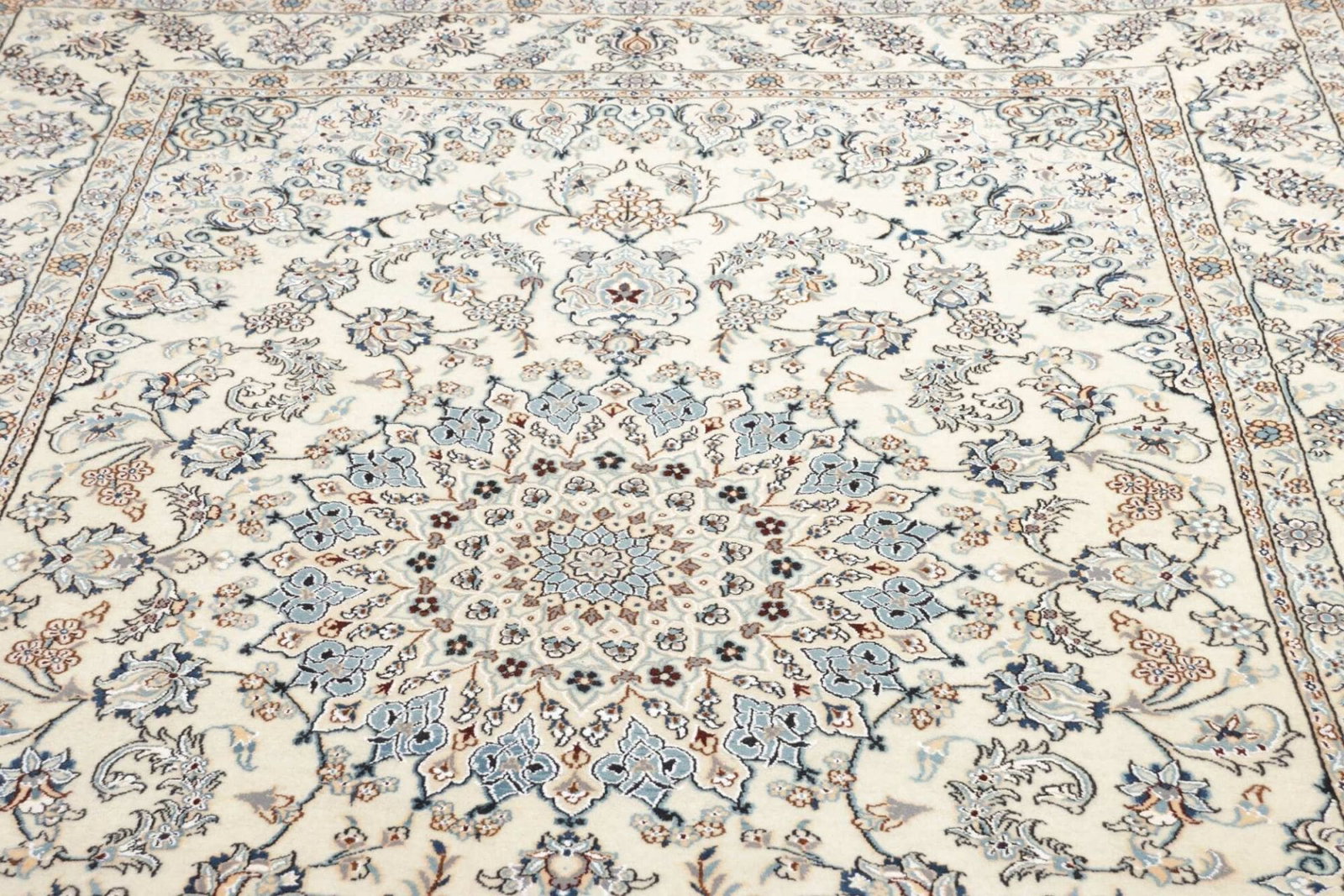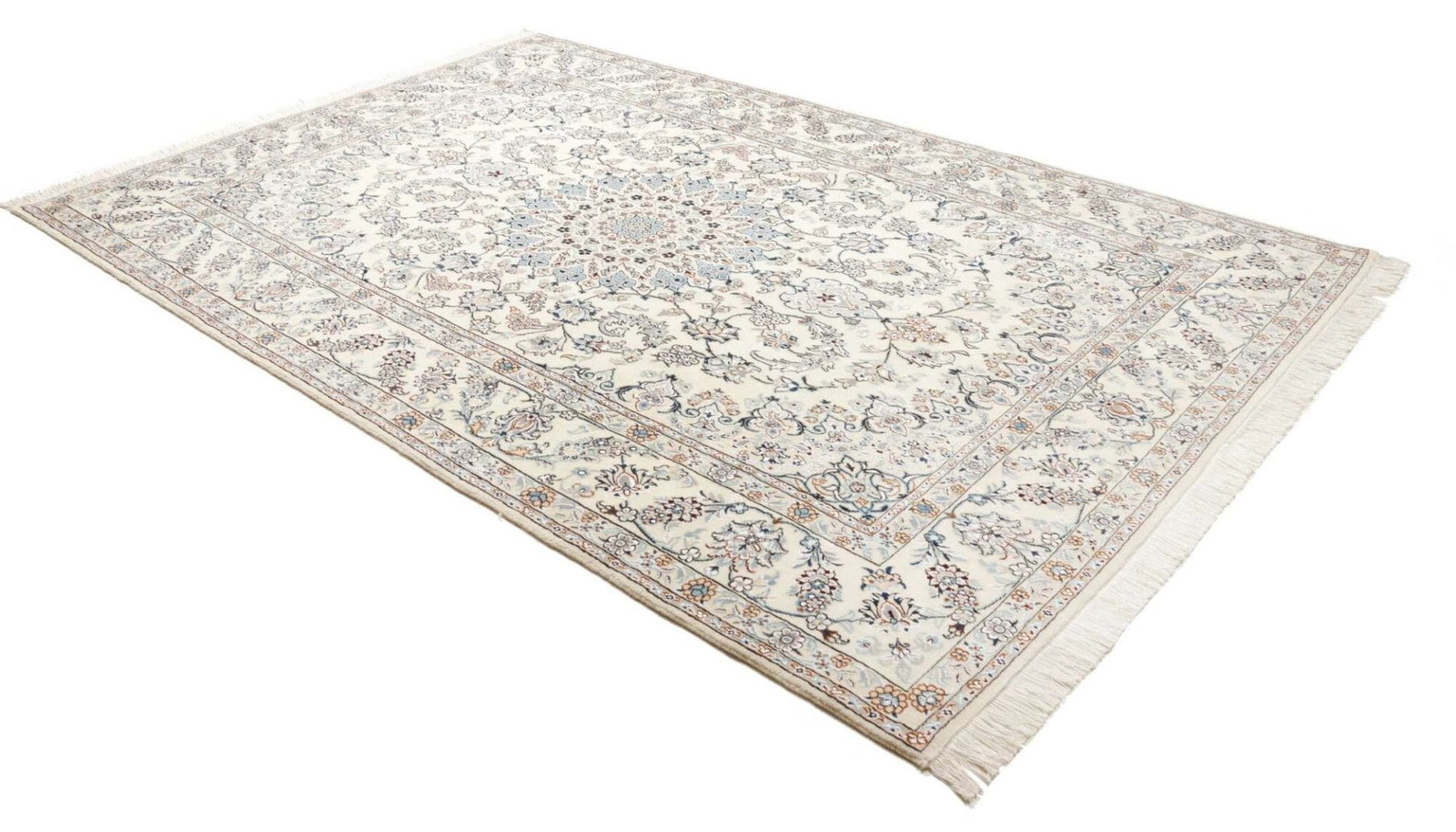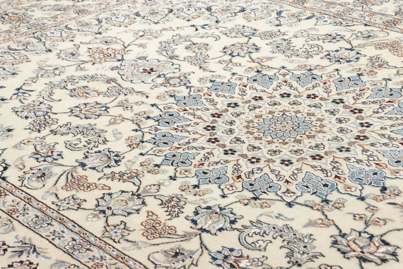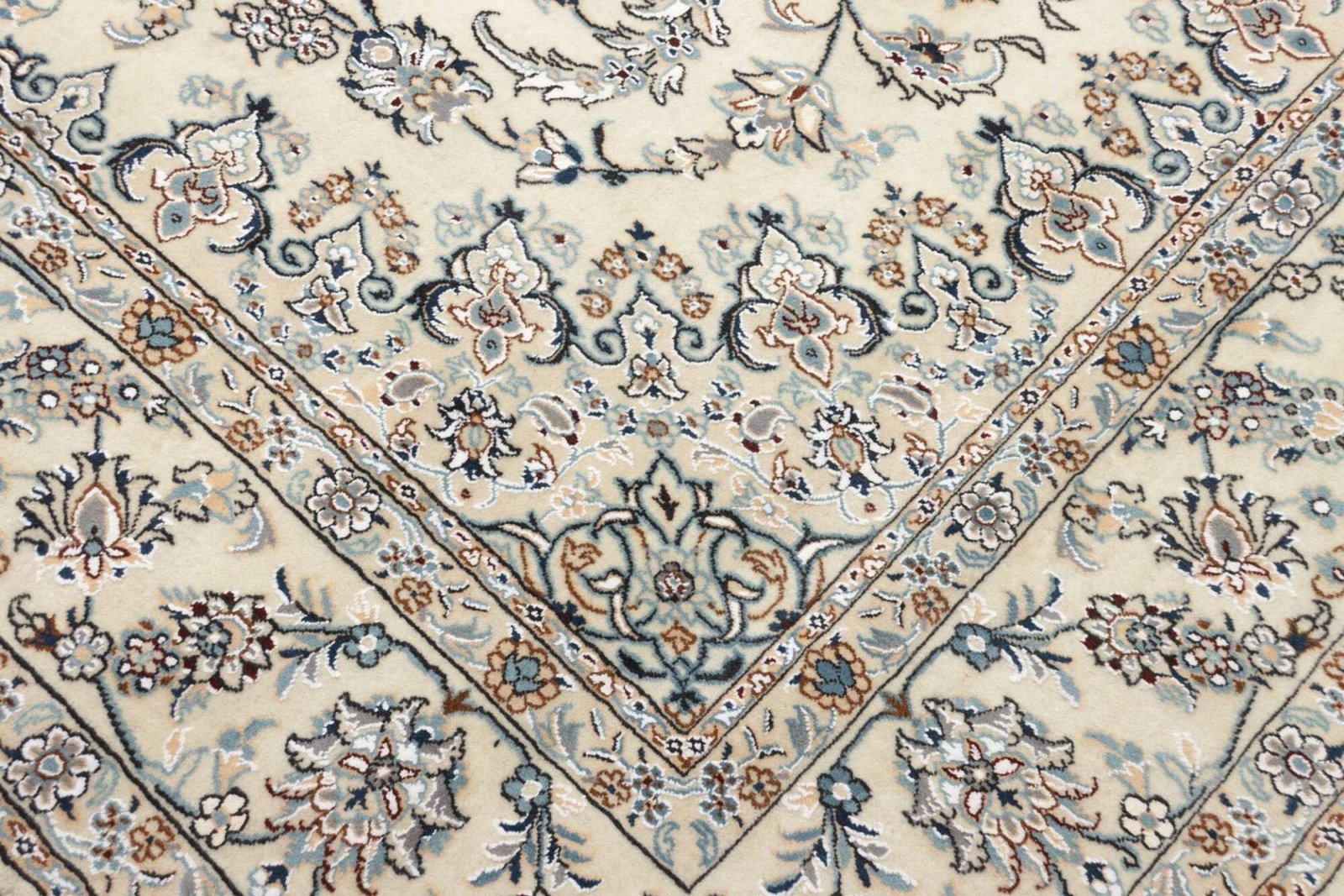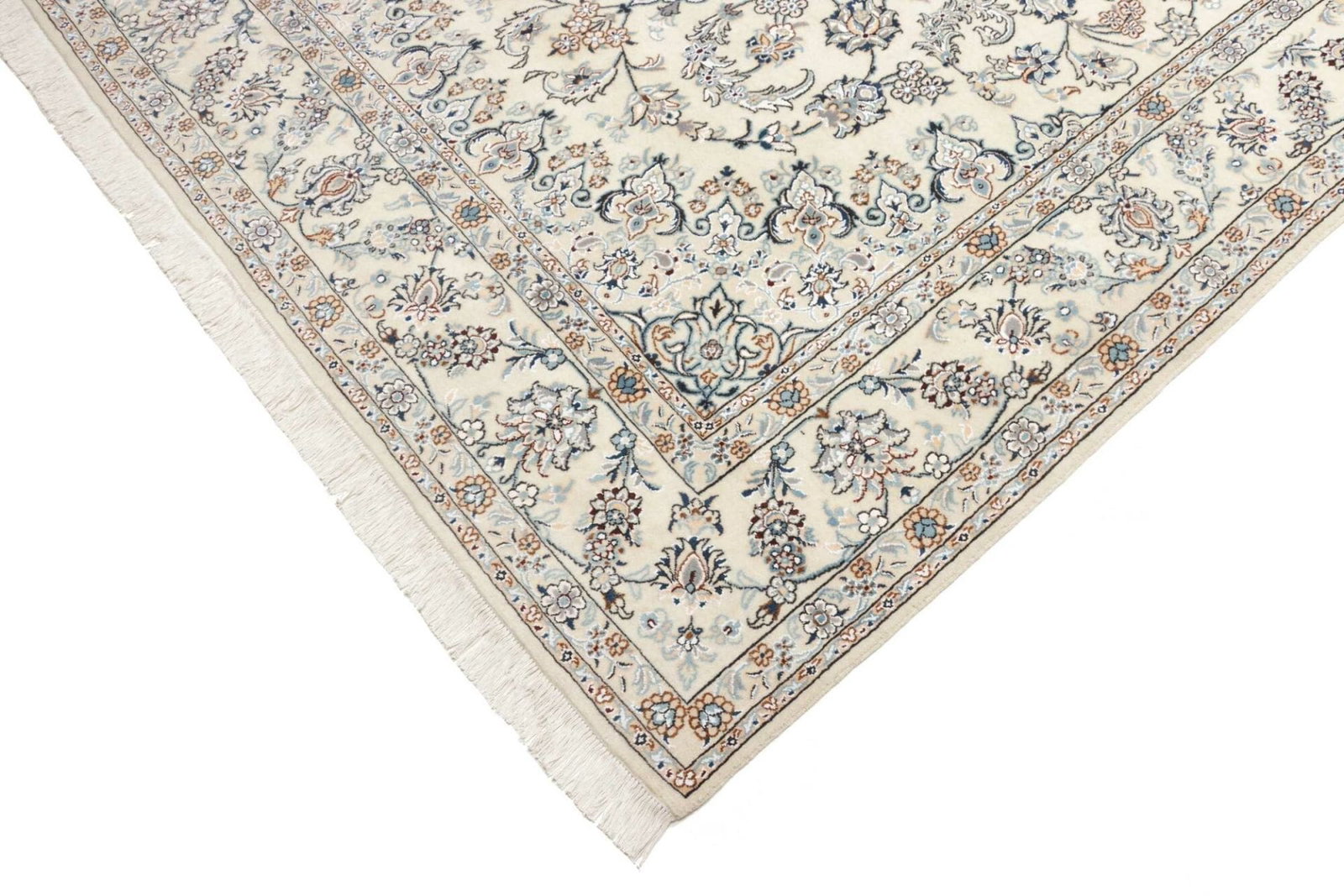Nain Teppich | Knotendichte: ca. 500.000 Knoten/m² | Material: 100% Schurwolle (Flor), 100% Baumwolle (Kette) | Größe: 199 x 300 cm | Herkunft: Iran | Zustand: Handgeknüpft, exklusive Qualität | Muster: Klassische florale Motive in hellen und königsblauen Tönen