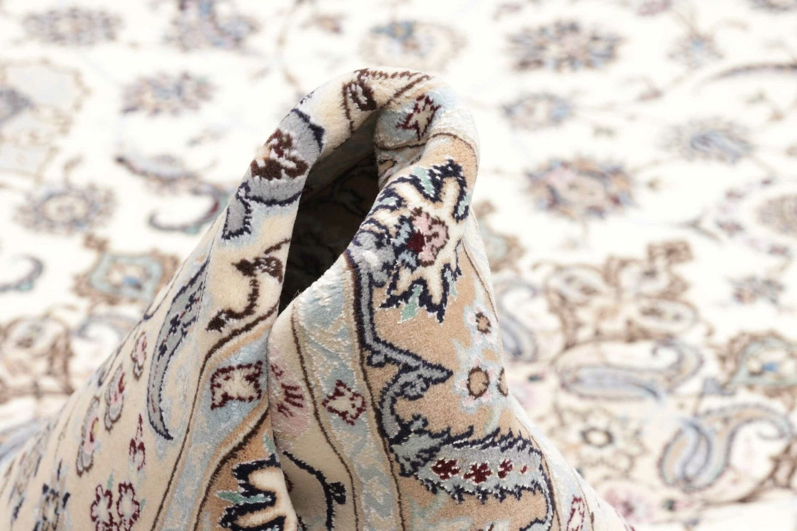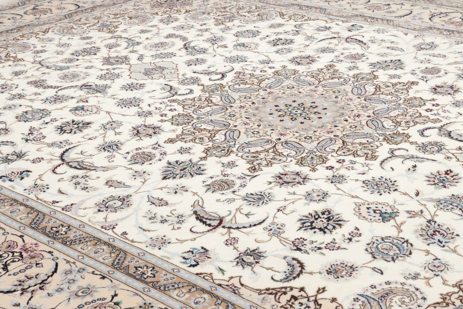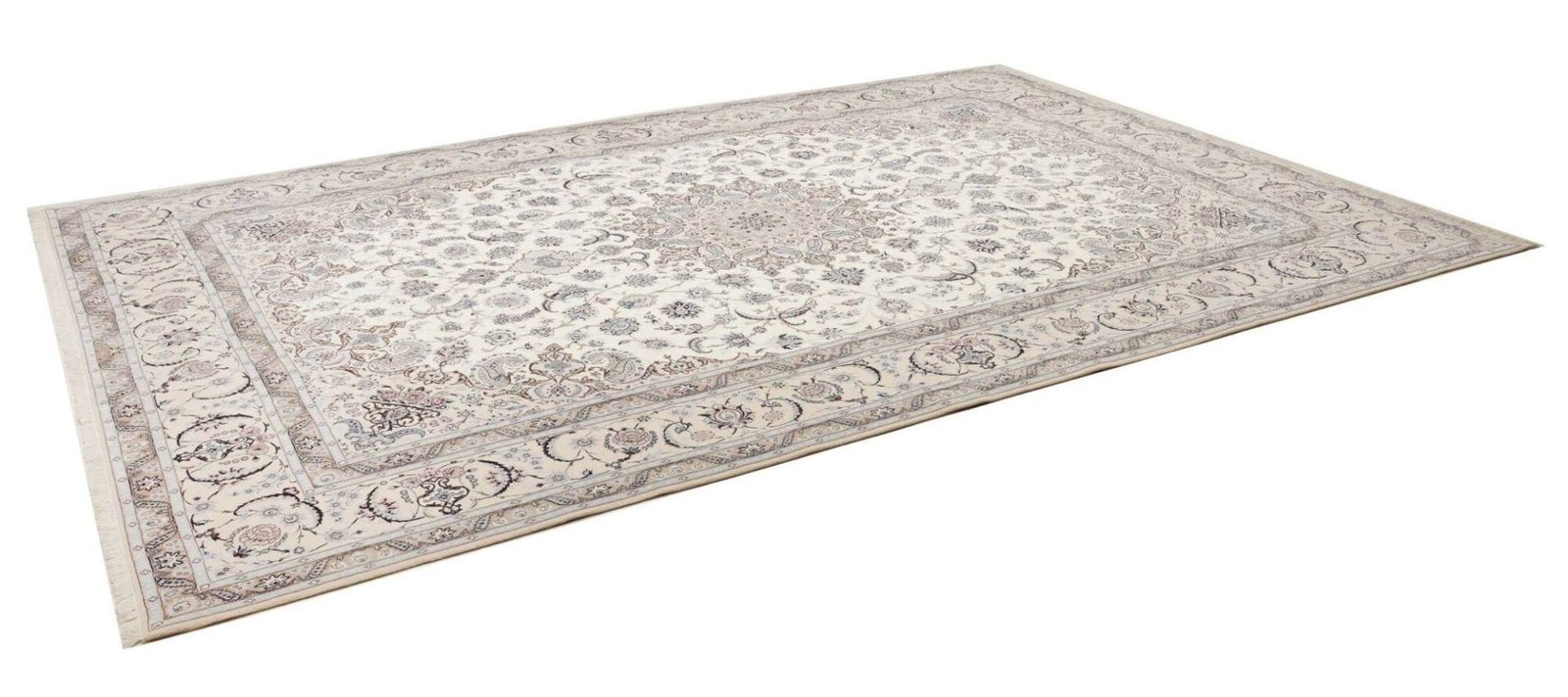 Die Teppichherstellung hat in dieser Region eine lange Tradition, die bis in die Safavid-Dynastie zurückreicht. Die Teppiche aus Nain sind besonders geschätzt, weil sie oft subtile Farbtöne und komplexe, florale Muster kombinieren, die an die blühenden Gärten Persiens erinnern. Dieses Erbe wird in dem vorliegenden Teppich auf wunderschöne Weise sichtbar.