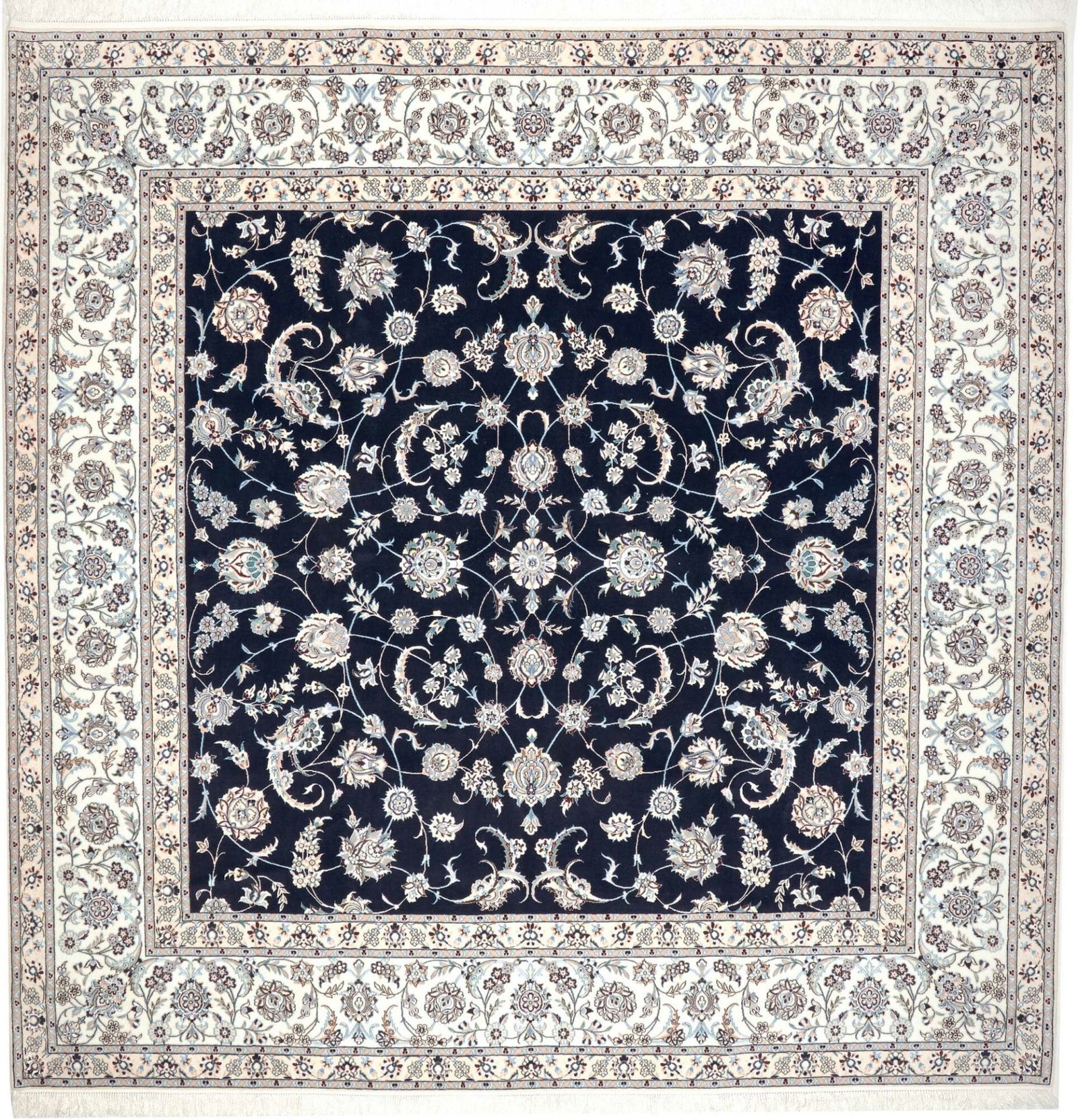 12653$Ursprünglicher Preis war: 12653$10749$Aktueller Preis ist: 10749$Nain Teppich | Knotendichte: ca. 900.000 Knoten/m² | Material: 100% Schurwolle und 100% Baumwolle | Größe: 263 x 261 cm | Herkunft: Iran | Zustand: Exzellente handgeknüpfte Qualität | Muster: Klassische florale Motive mit königsblauem Ton