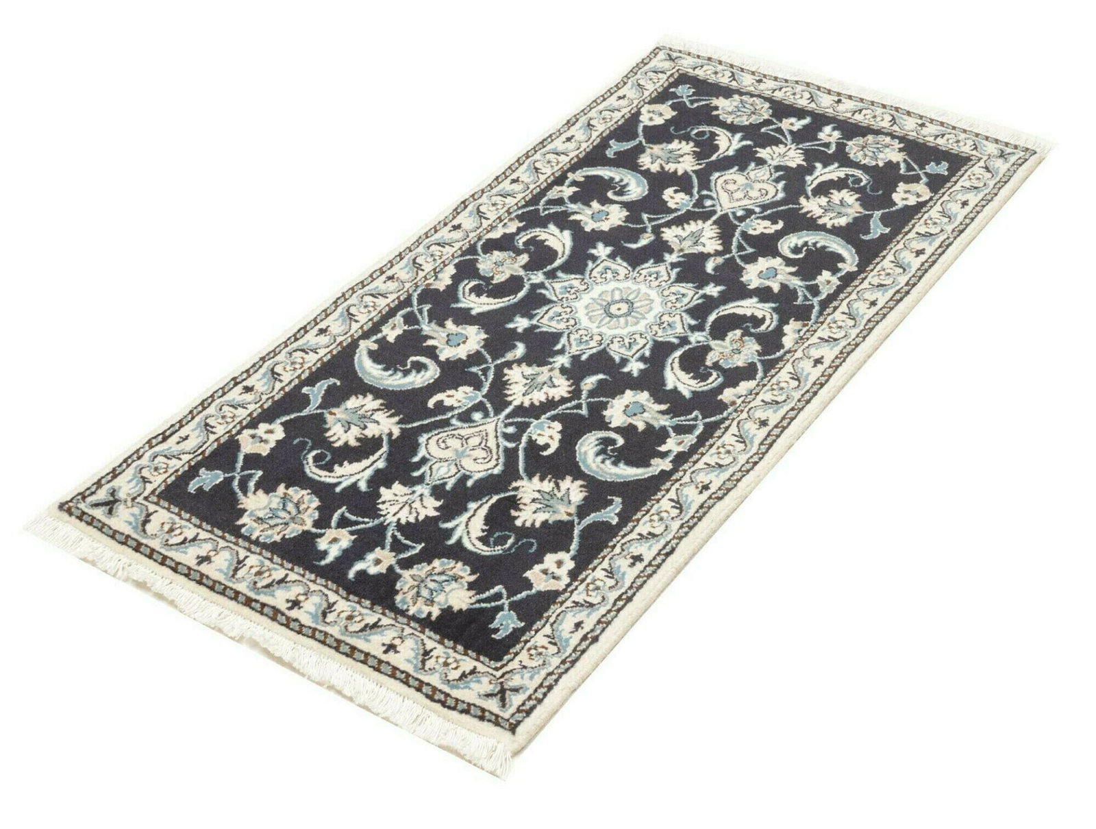 Exklusiver Nain Teppich 68 x 138cm in königsblau, handgeknüpft