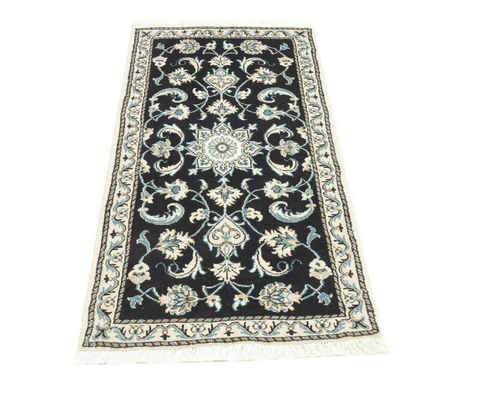 Nain Teppich | Knotendichte: ca. 200.000 Knoten/m² | Material: 100% Schurwolle (Flor) und 100% Baumwolle (Kette) | Größe: 68×138 cm | Handgeknüpft | Herkunft: Iran | Zustand: Ausgezeichnet | Muster: Klassische florale Motive
