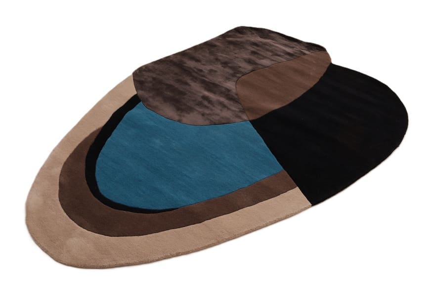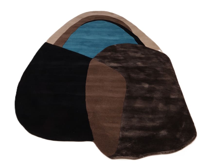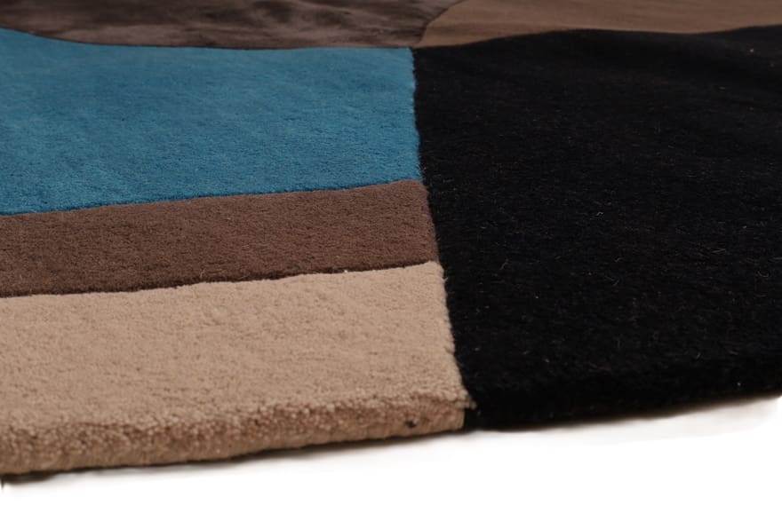 Handgetufteter Teppich | Knotendichte: 200.000 – 250.000 Knoten/m² | Material: Wolle mit Bamboo Seide | Größe: 232×161 cm | Farbe: Blau, Schwarz, Braun & Beige | Zustand: Neu | Ursprung: Indien | Dicke: ca. 14 mm | Gewicht: ca. 12 kg