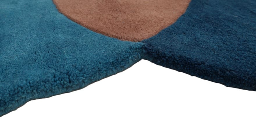 Exklusiver handgetufteter Teppich | Knotendichte: 200.000 – 250.000 Knoten/m² | Material: Wolle mit Bamboo-Seide | Größe: 247×151 cm | Farbe: Blau, Braun, Beige, Schwarz | Zustand: Neu | Ursprung: Indien | Dicke: ca. 14 mm | Gewicht: ca. 12 kg