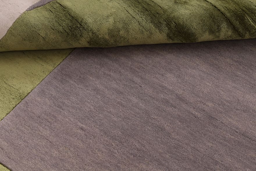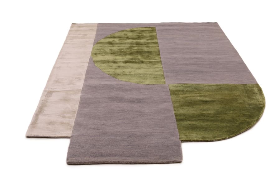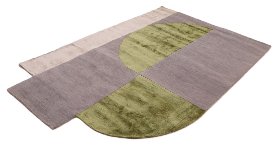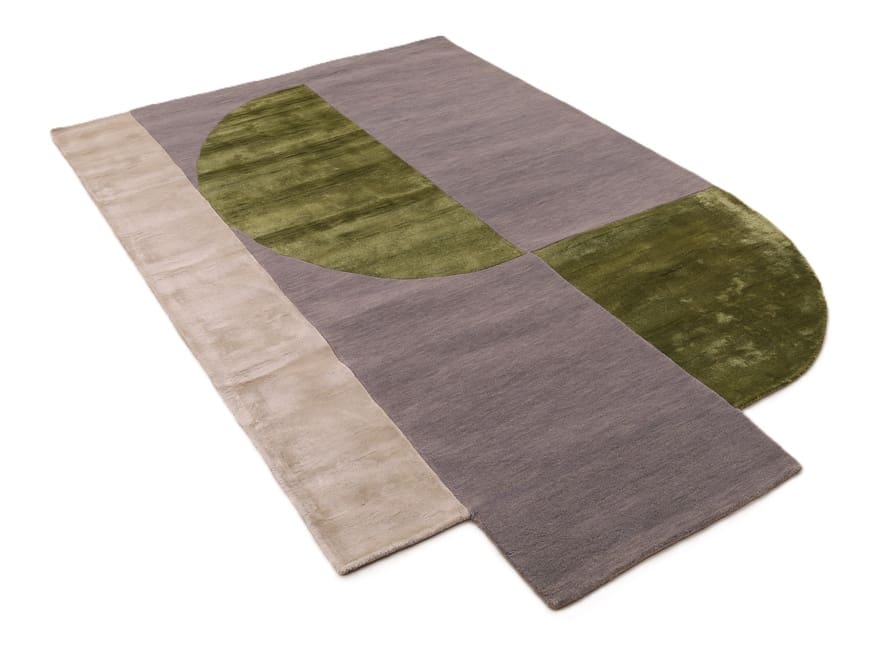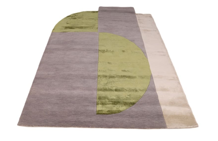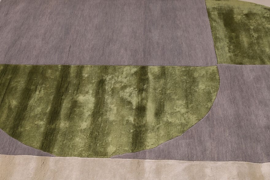 Handgetufteter Teppich | Knotendichte: 200.000 – 250.000 Knoten/m² | Material: Wolle mit Bamboo Seide | Größe: 247×151 cm | Farbe: Grau, Grün & Beige | Zustand: Neu | Ursprung: Indien | Dicke: ca. 14 mm | Gewicht: ca. 12 kg
