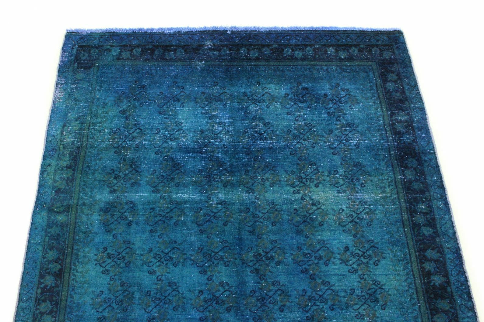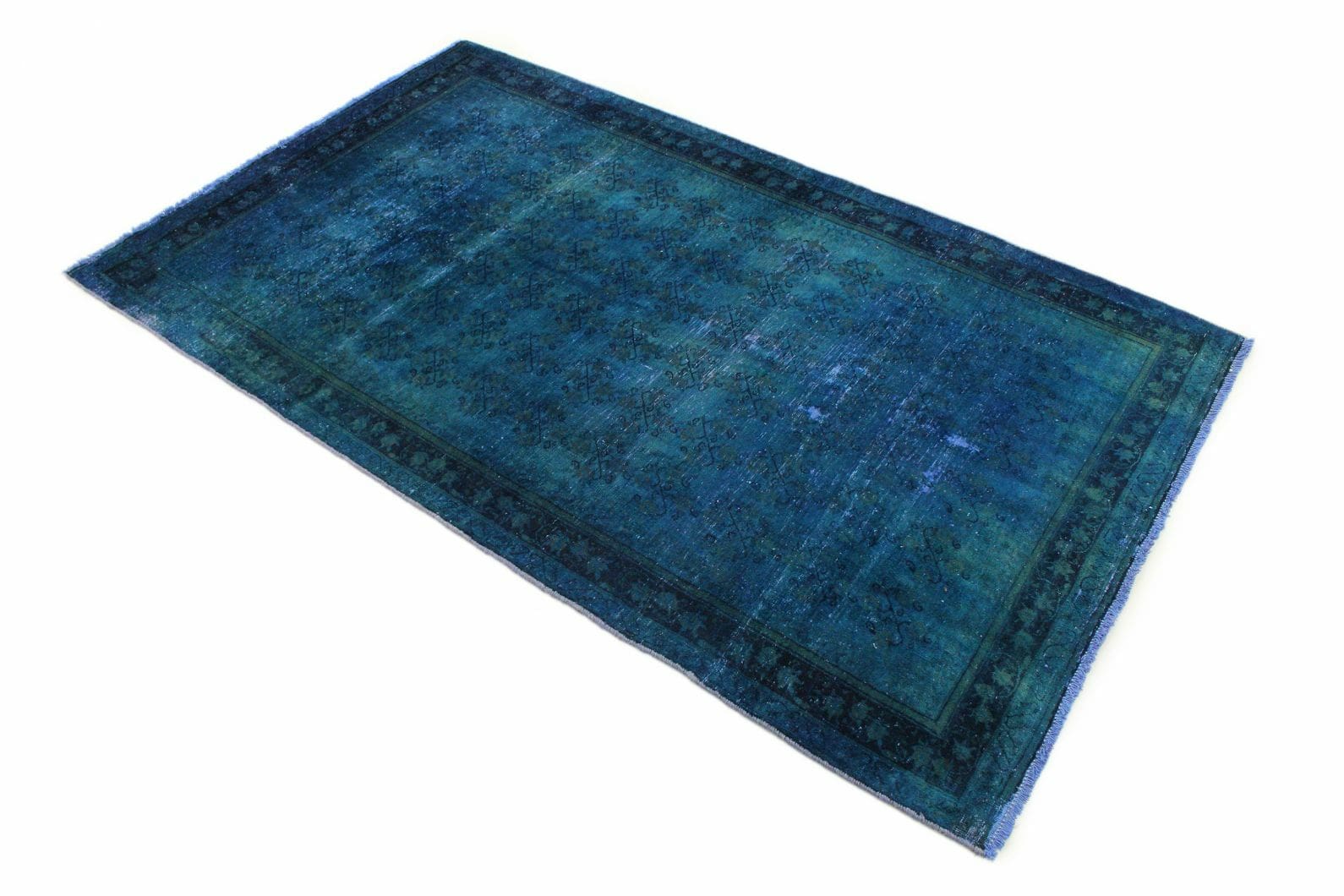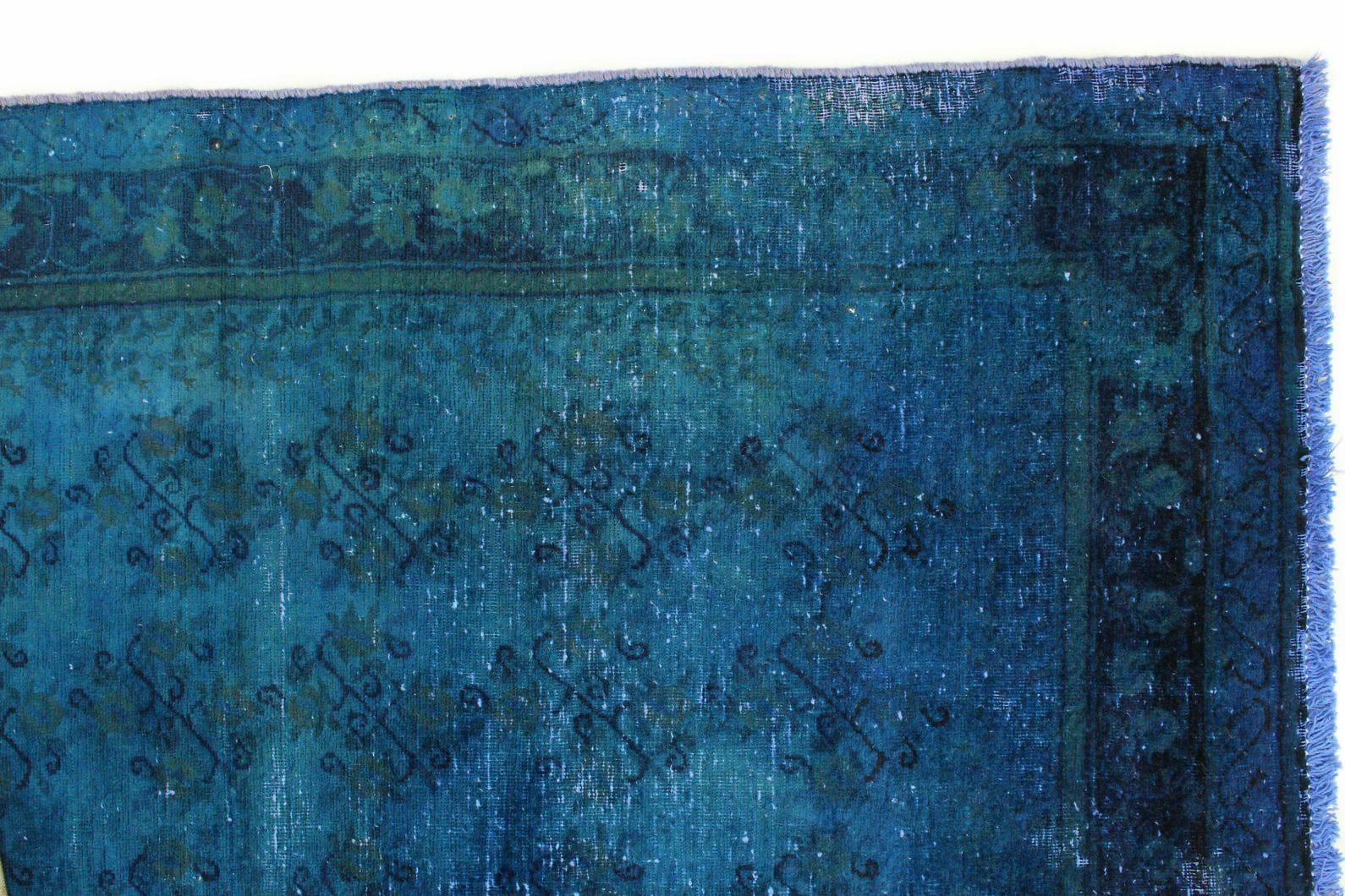 Exklusiver Design-Vintage-Teppich | Farbe: Blau | Größe: 210×129 cm | Material: Handgesponnene Wolle und Baumwolle | Zustand: Neu mit Etikett | Herkunft: Orient | Stil: Modern und Vintage | Besonderheiten: Für Fußbodenheizung geeignet | Knotendichte: Hochwertige Verarbeitung | Einzigartige Überfärbung und individuelles Finish