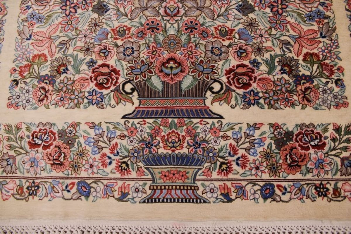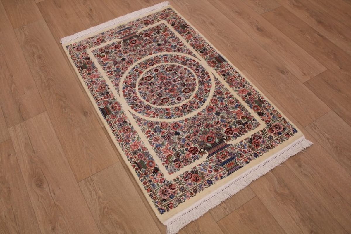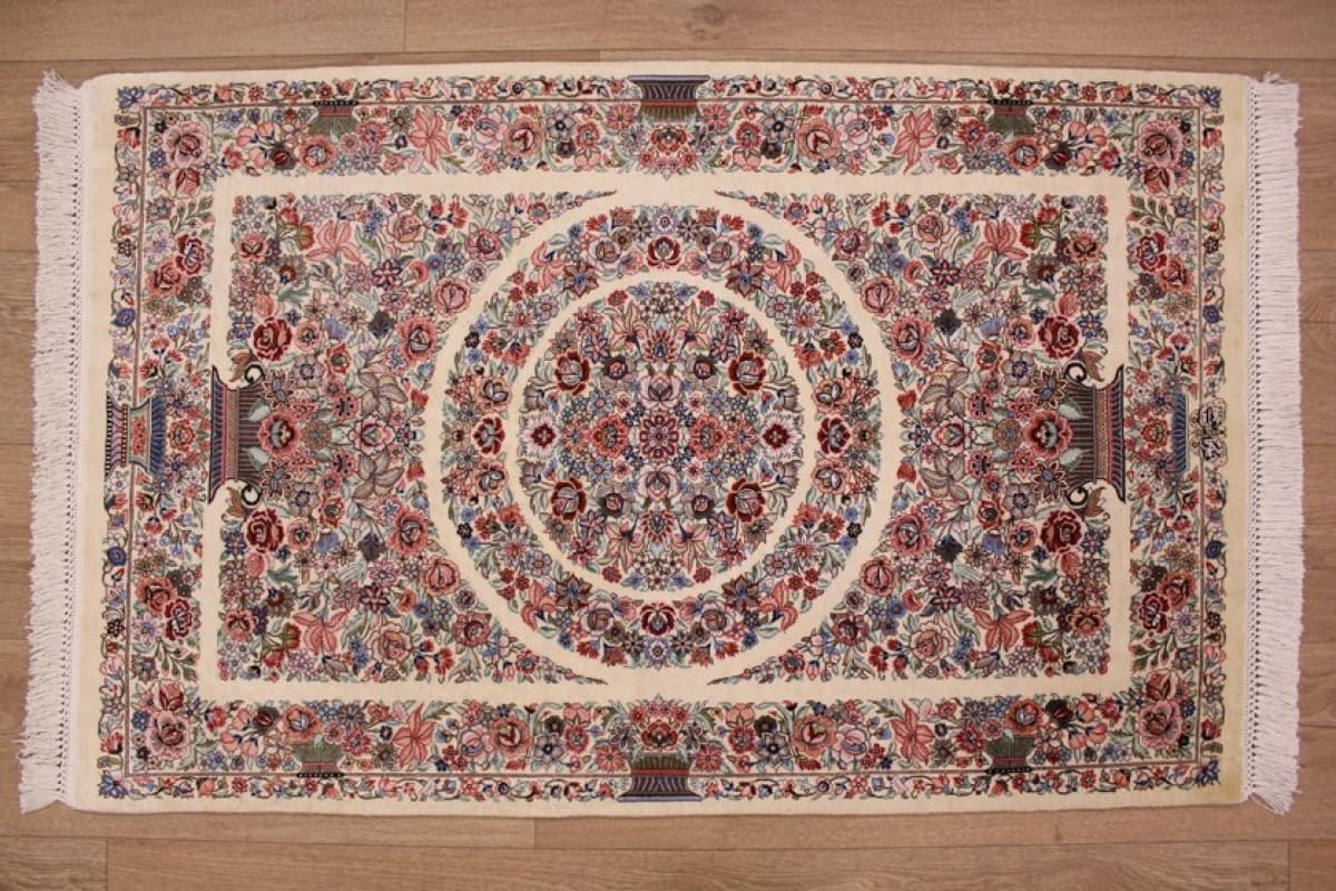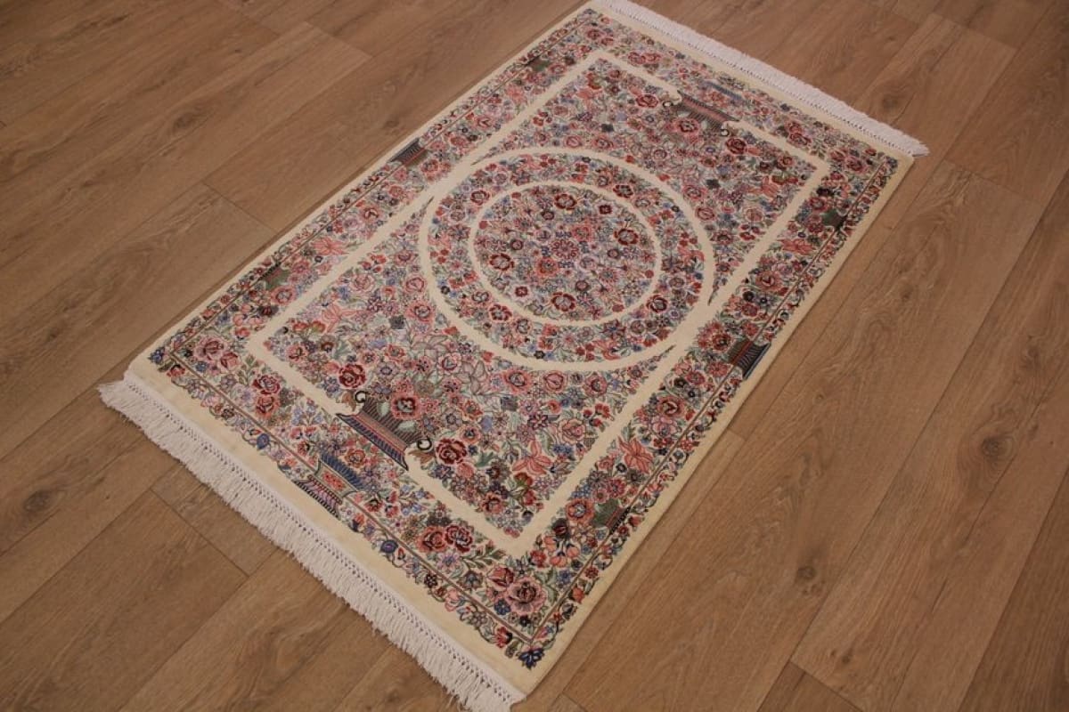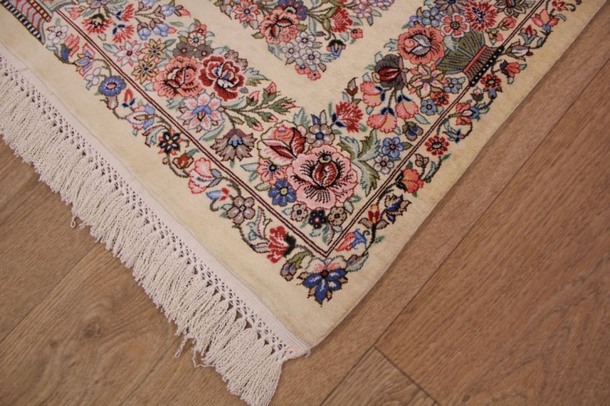 Exklusiver Seidenteppich Ghom 119×75 cm, Elfenbein, handgeknüpft