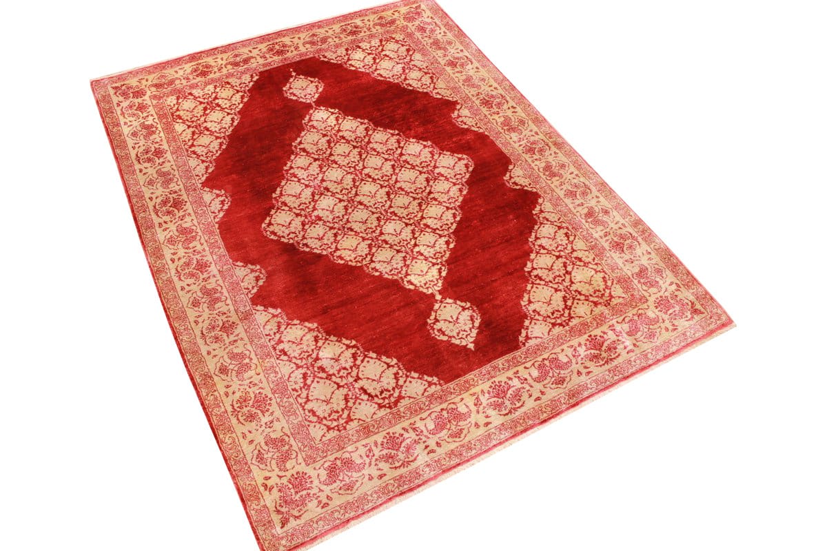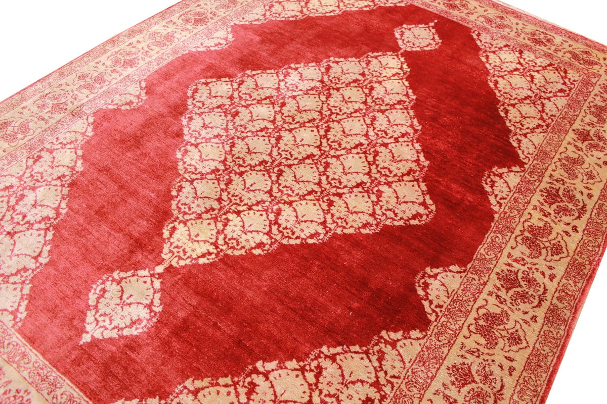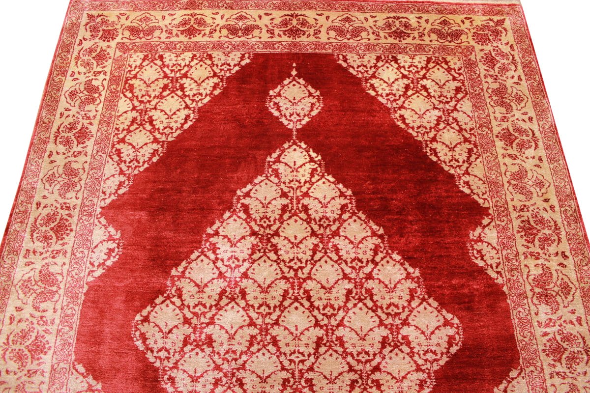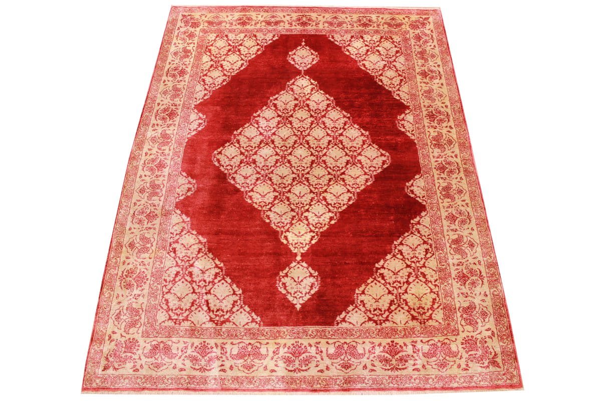 Der Seidenteppich Ghom zeichnet sich durch harmonische Farben aus, die in sanften und eleganten Nuancen aufeinander abgestimmt sind. Solche Farbkompositionen schaffen eine beruhigende Atmosphäre und können in verschiedenen Wohnstilen eingesetzt werden, von klassisch bis modern. Die Muster der Teppiche aus Ghom sind oft reich verziert und zeichnen sich durch florale und geometrische Elemente aus, die die kulturellen Wurzeln des Ortes verkörpern. Viele Motive sind symbolisch und tragen tiefere Bedeutungen, die in der persischen Kunst und Tradition verwurzelt sind.