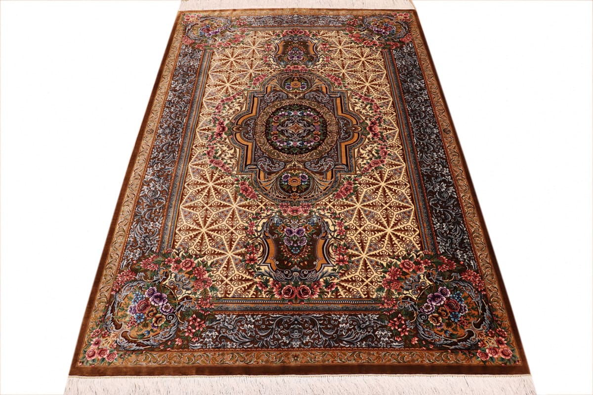 Exklusiver Seidenteppich Ghom Braun 210×137 cm – handgeknüpft