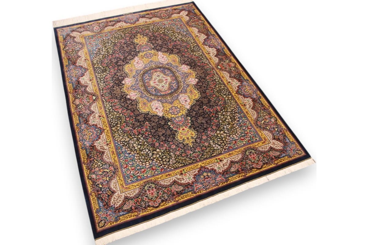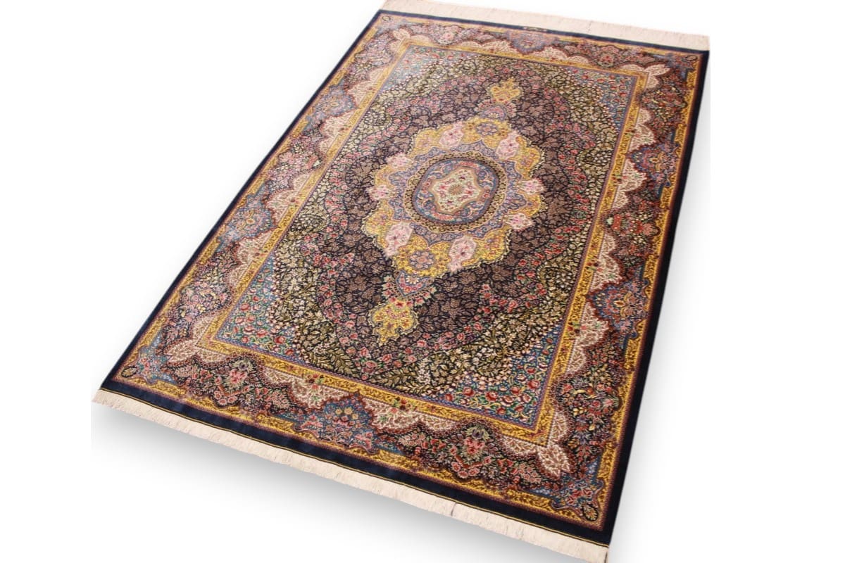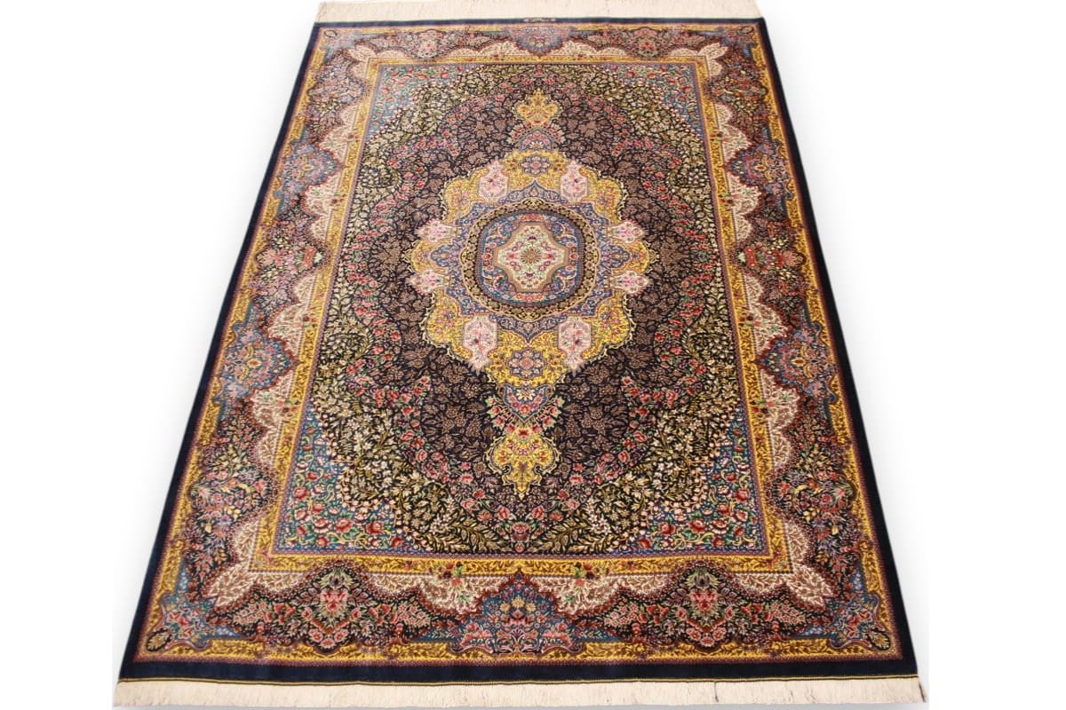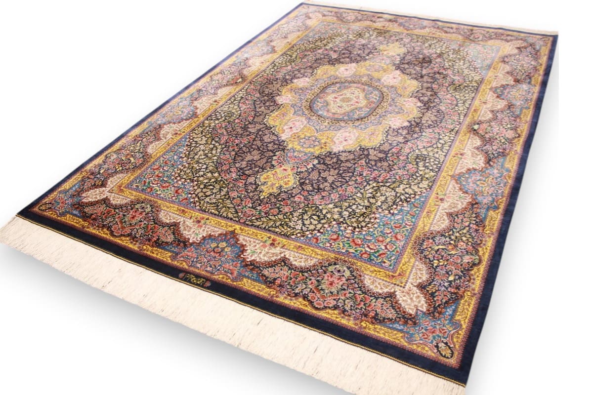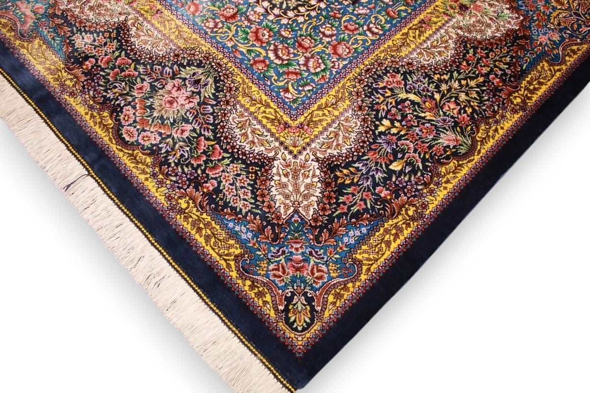 Exklusiver Seidenteppich Ghom Dunkelblau 199×139 cm handgeknüpft
