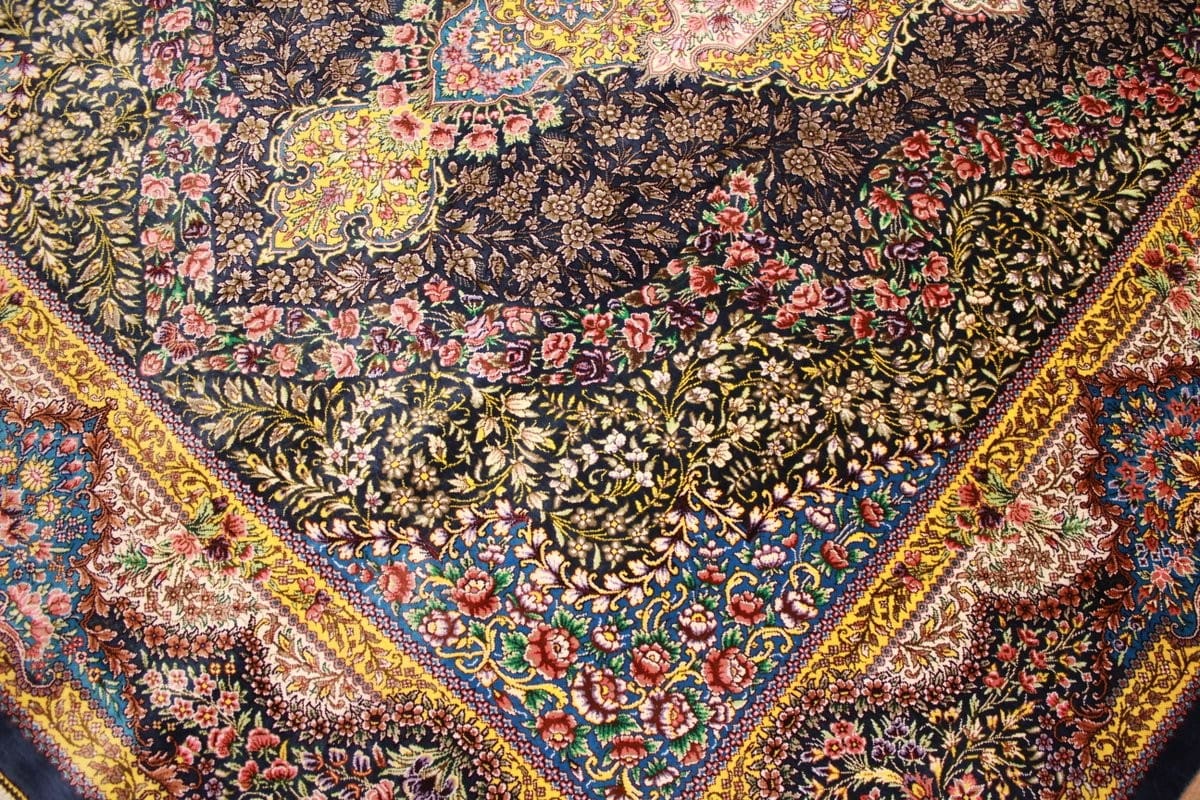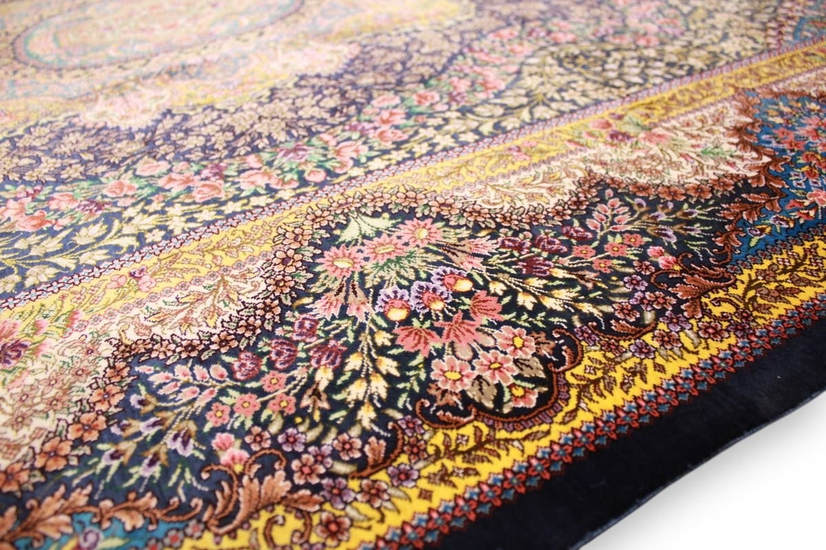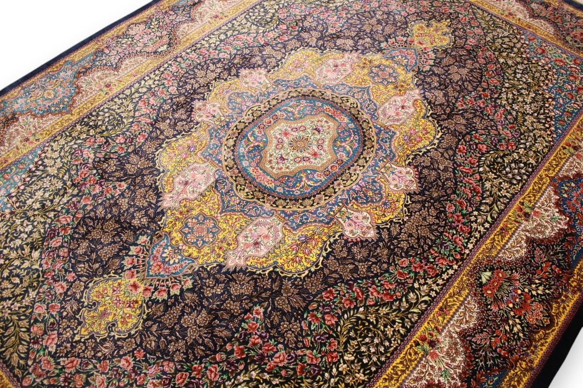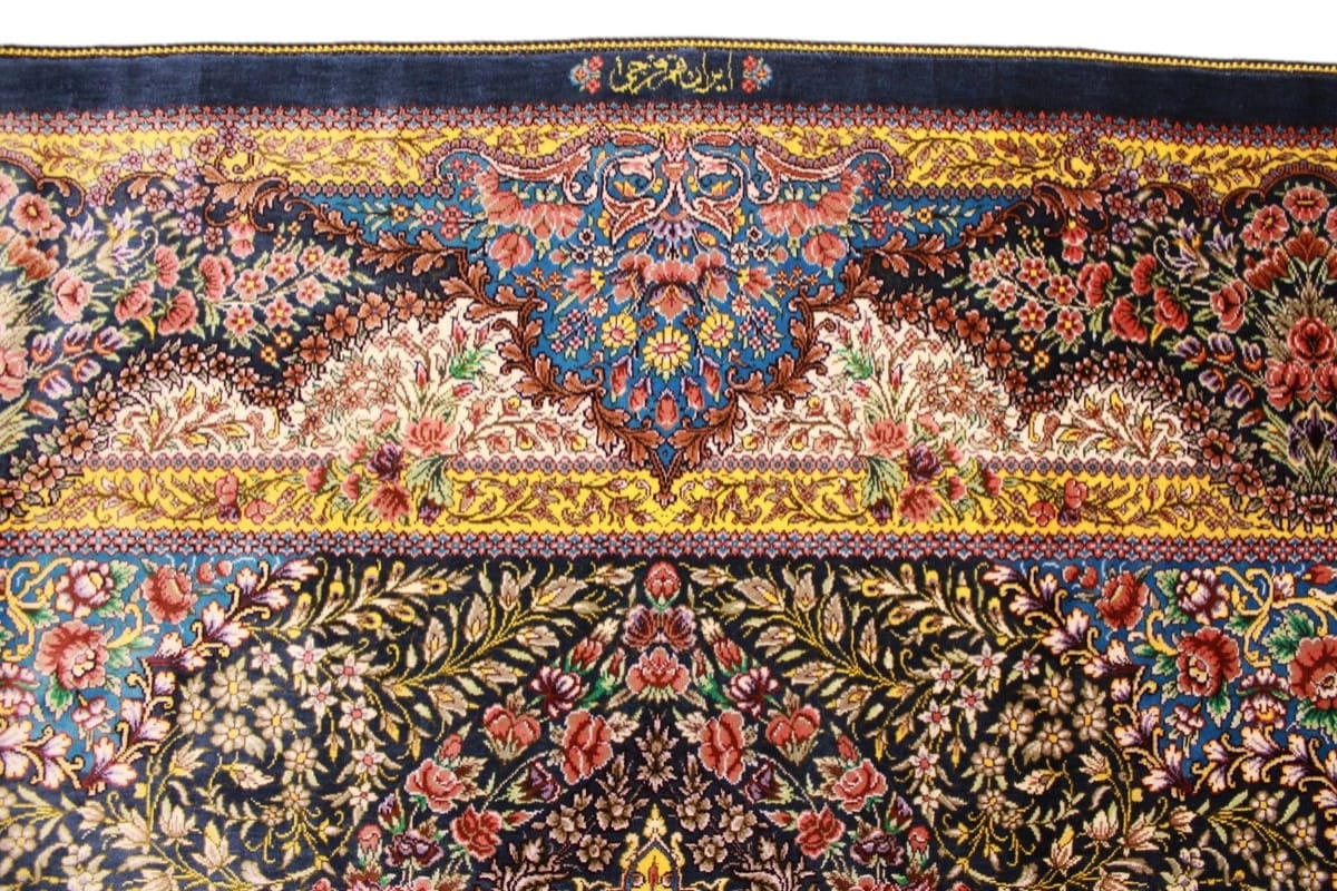 Exklusiver Seidenteppich Ghom Dunkelblau