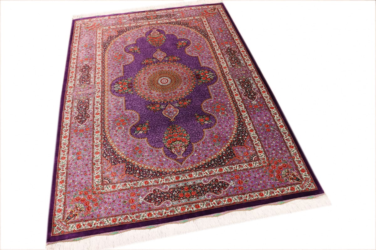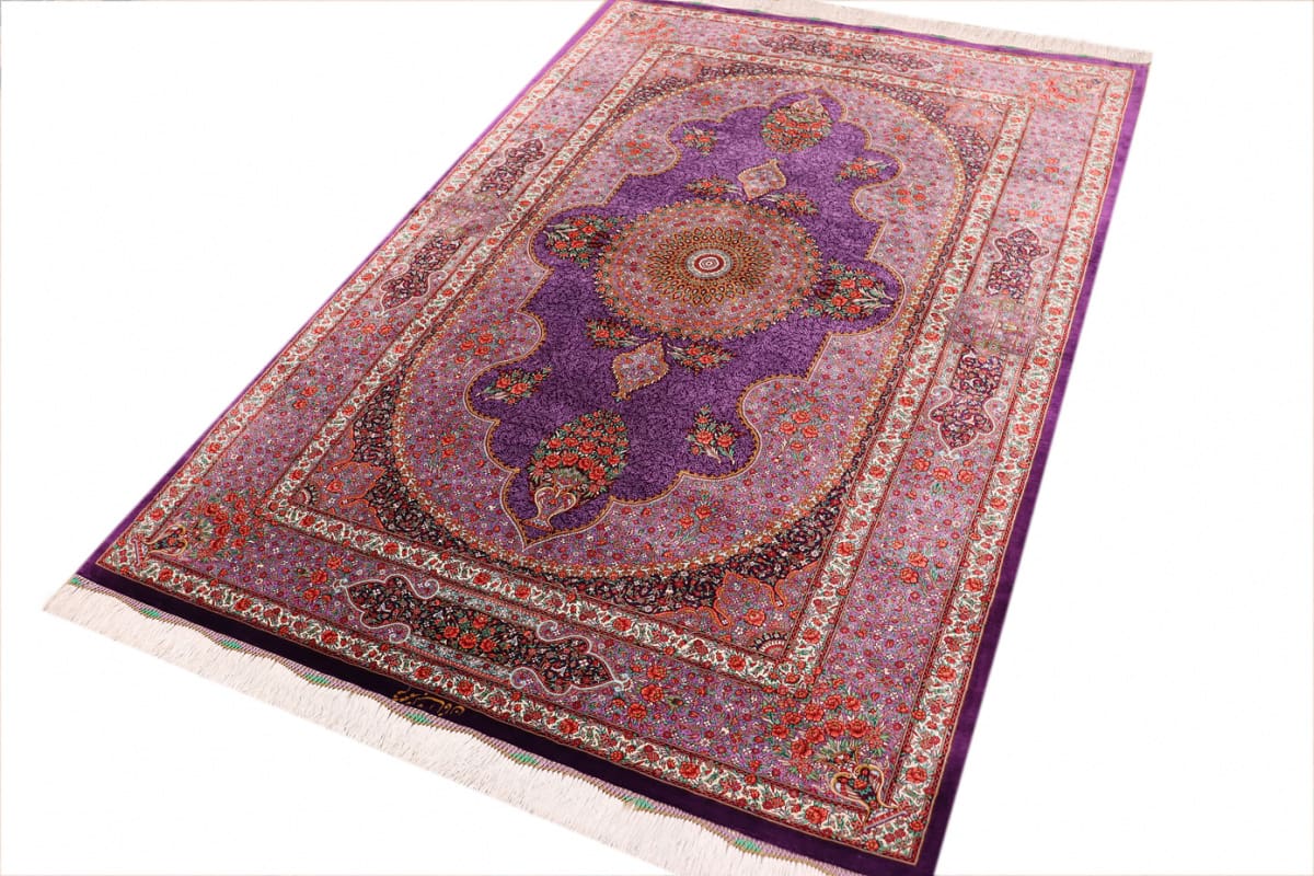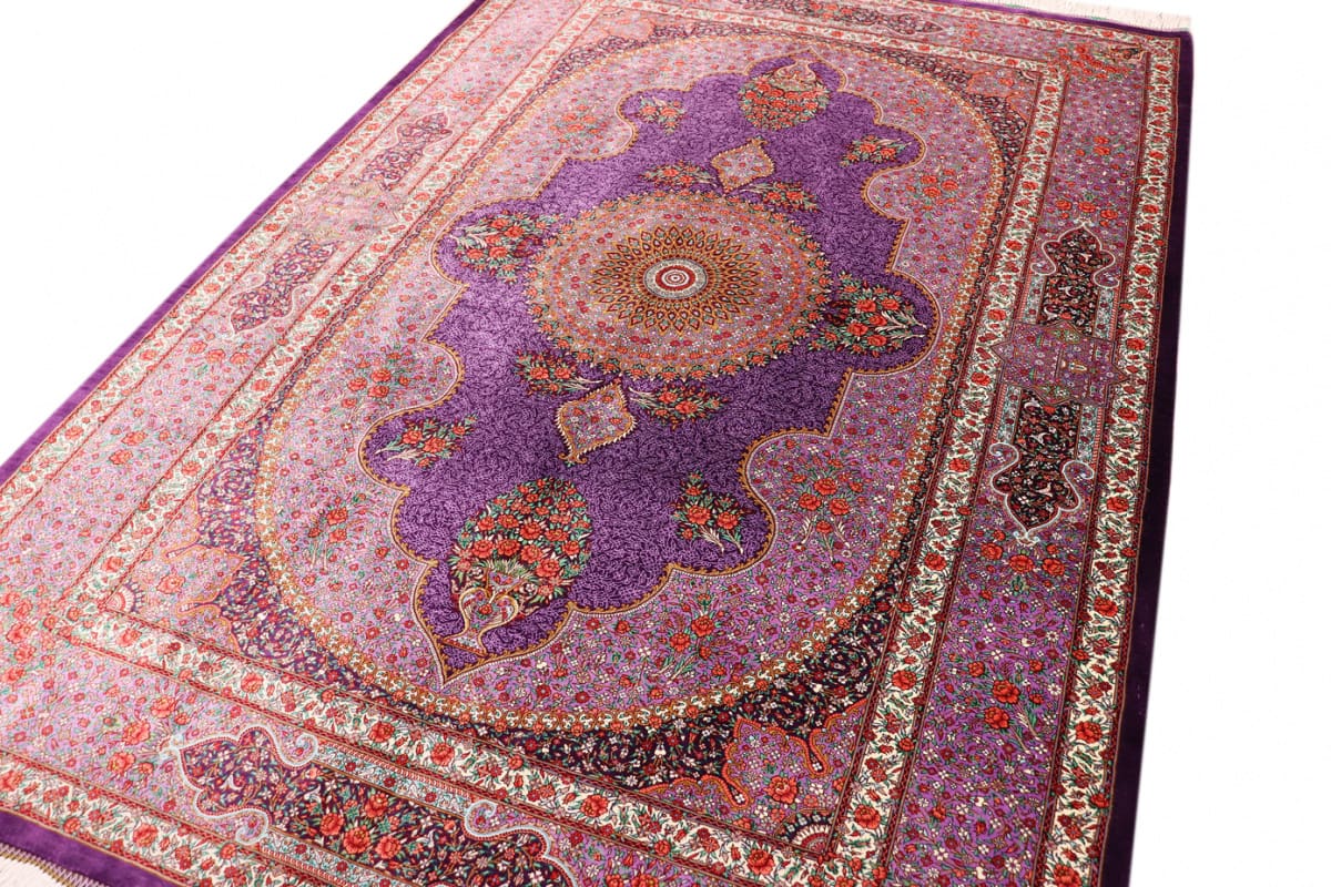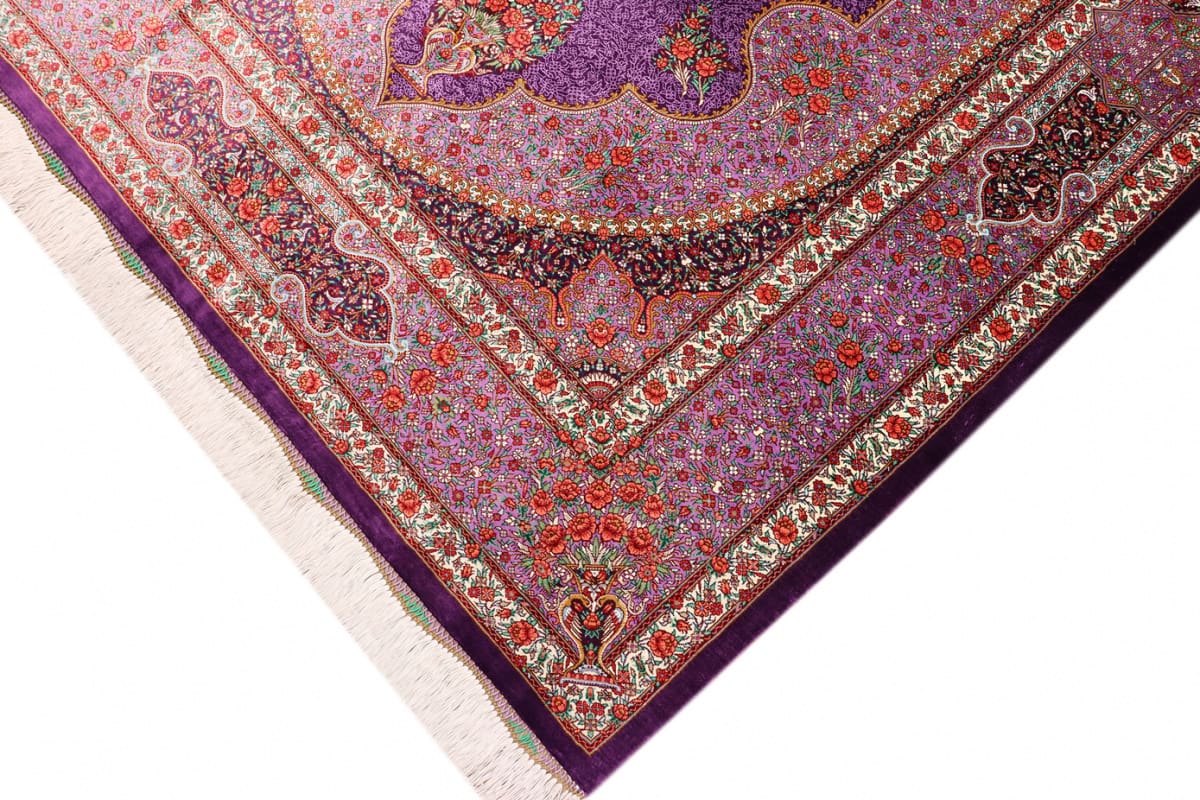 Exklusiver Seidenteppich Ghom Lila 199×131 cm – handgeknüpft