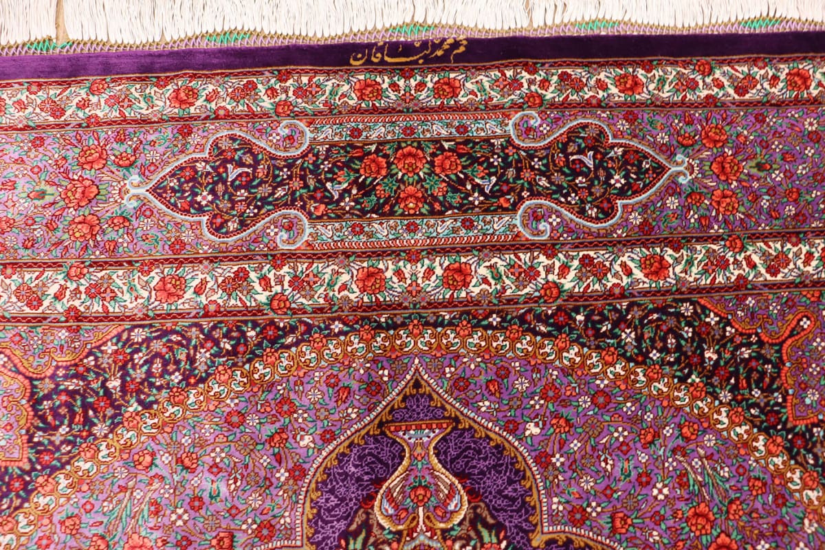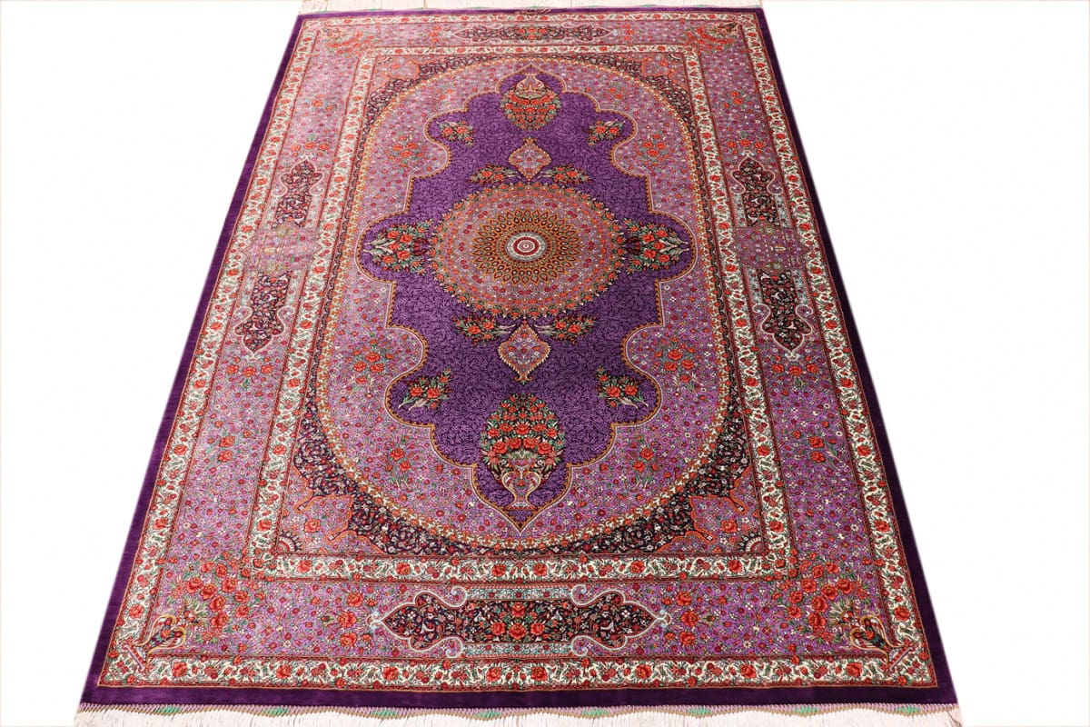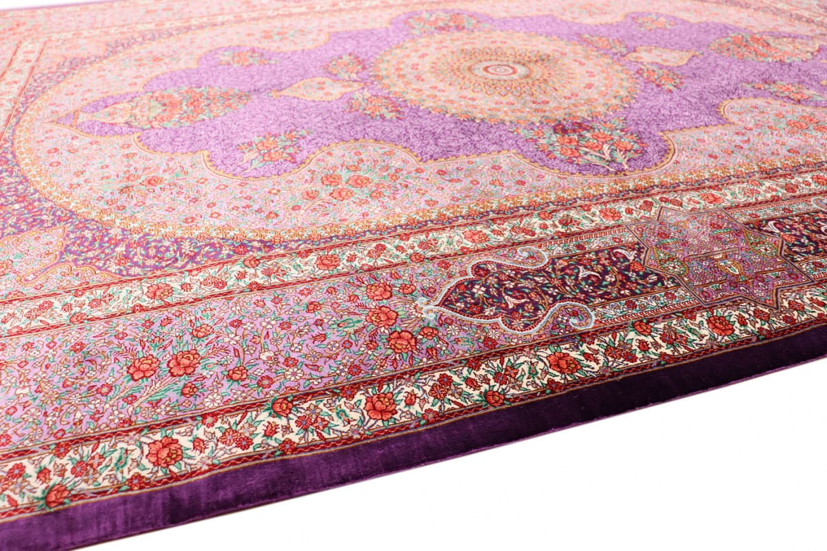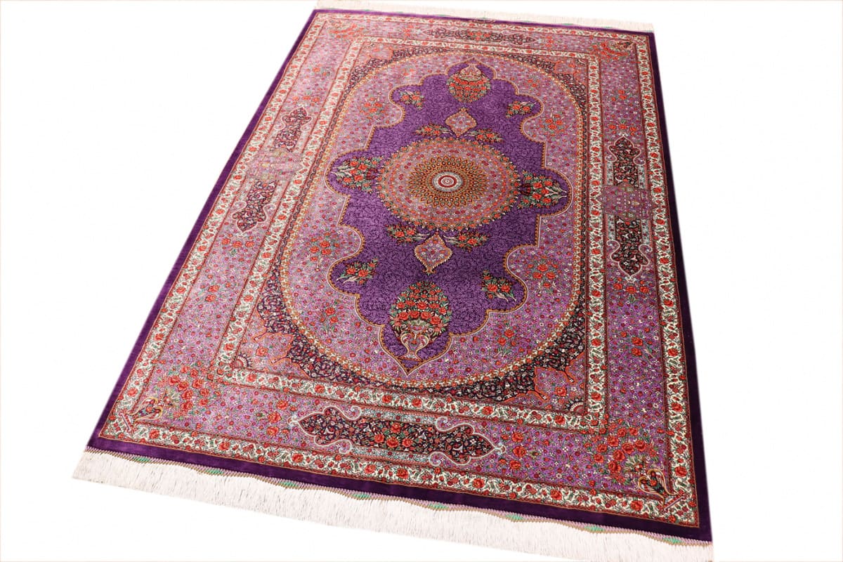 Exklusiver Seidenteppich Ghom Lila 199×131 cm – handgeknüpft
