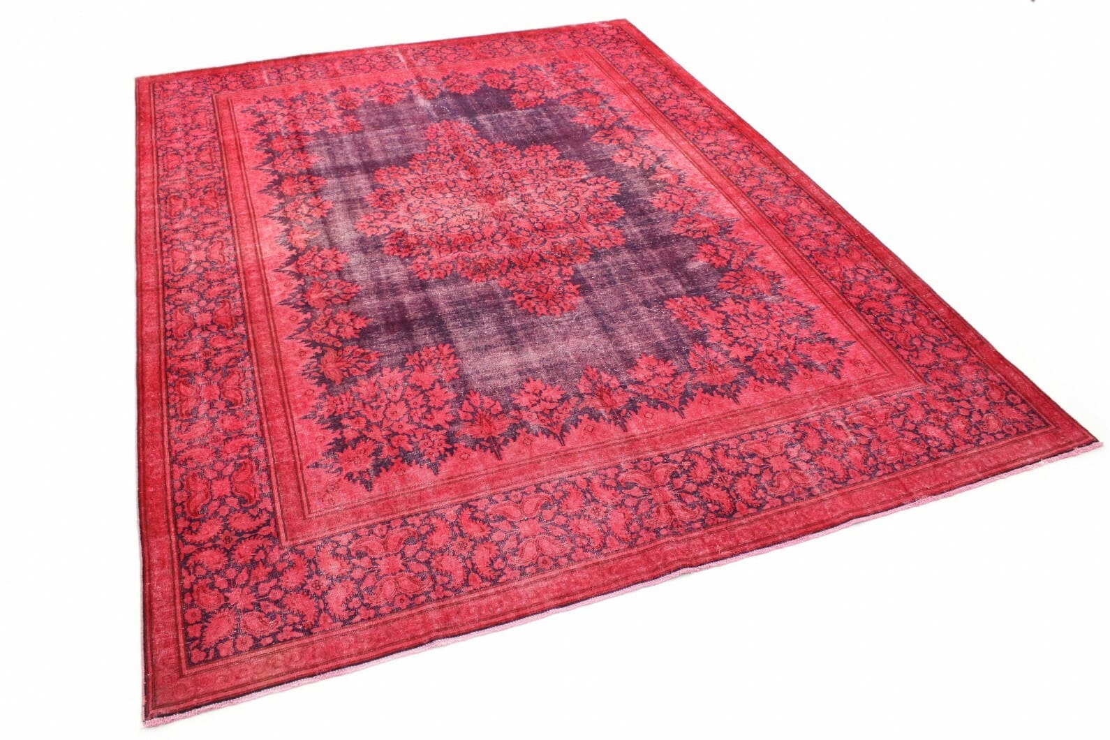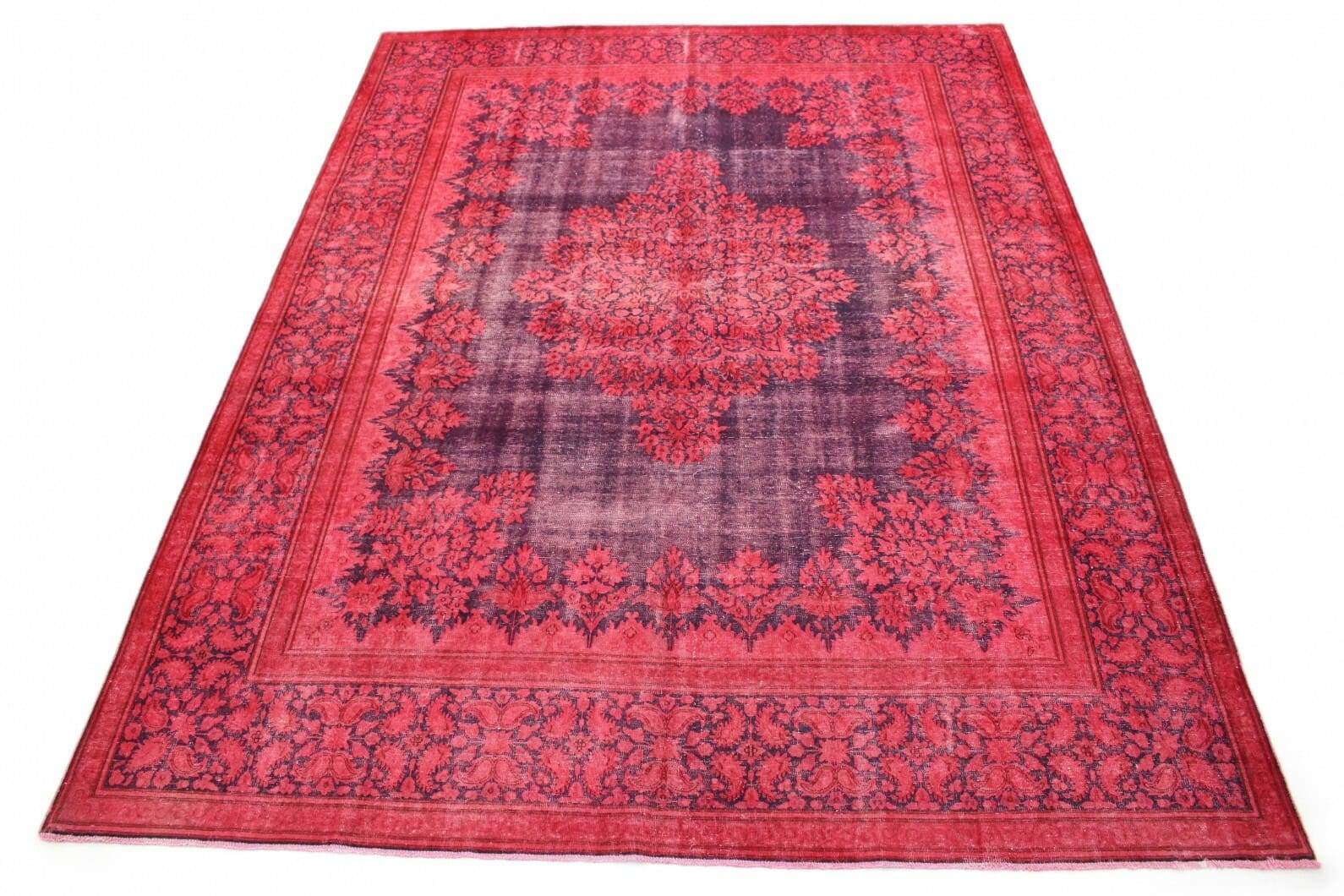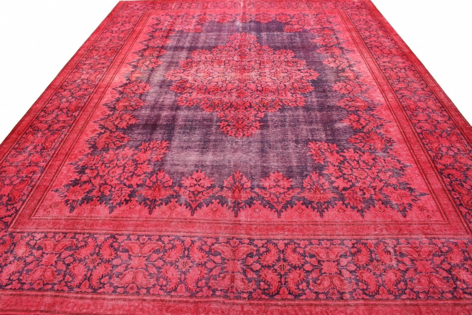 Exklusiver Vintage-Teppich | Knotendichte: Handgeknüpft | Material: Handgesponnene Wolle und Baumwolle | Größe: 398×296 cm | Farbe: Rot Lila | Zustand: Neu mit Etikett | Herkunft: Orient | Stil: Modern und Vintage | Besonderheit: Für Fußbodenheizung geeignet | Alter: 20 – 50 Jahre