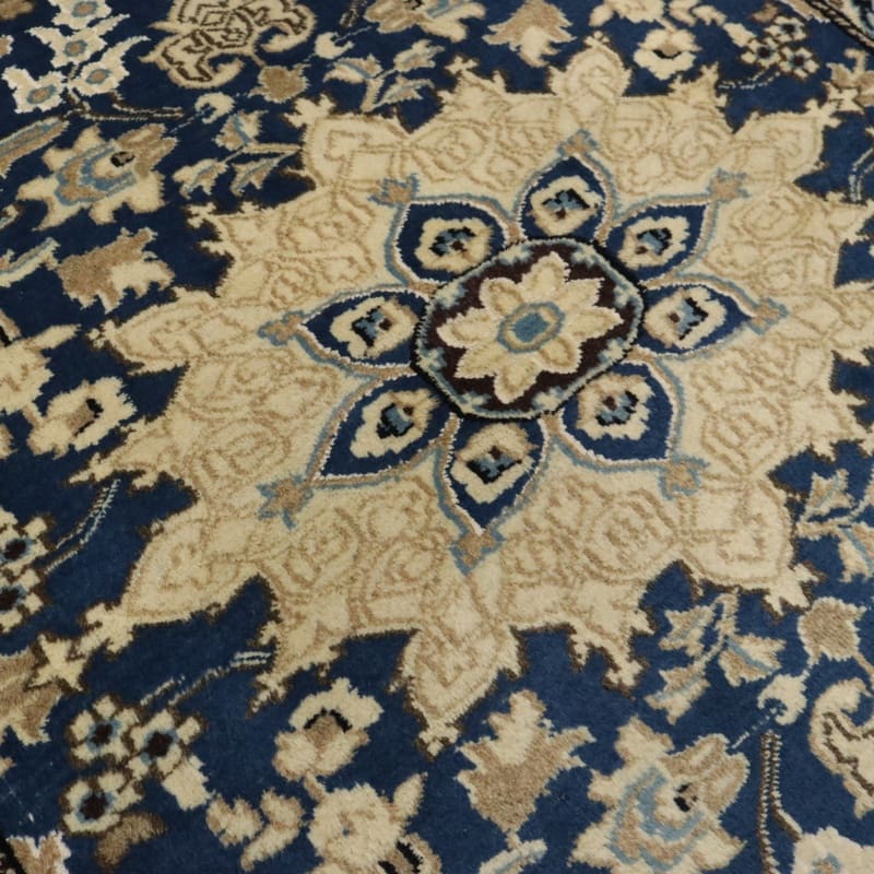 Nain ist eine Stadt im Iran, die sich in der Nähe von Isfahan befindet und für ihre exquisite Teppichproduktion bekannt ist. Die Teppichherstellung hat in dieser Region eine lange Tradition, die bis ins 16. Jahrhundert zurückreicht. Die Teppiche aus Nain sind bekannt für ihre prächtigen Designs und ihre feine Knotung. Die Tradition, Teppiche in dieser Region zu knüpfen, wird von Generation zu Generation weitergegeben, und viele der Techniken sind über Jahrhunderte hinweg unverändert geblieben. Teppiche aus Nain sind oft mit floralen Motiven und eleganten Medaillons gestaltet, die die Geschichte und Kultur desiranischen Volkes widerspiegeln.