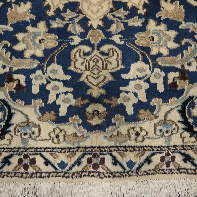 Das Design und die Muster des exquisiten Nain-Teppichs sind ein weiteres Highlight. Die floralen und geometrischen Muster sind einzigartig und bieten ein harmonisches Zusammenspiel von Farben und Formen, das jedem Raum eine besondere Atmosphäre verleiht. Typische Farben für Nain-Teppiche sind helle Beige- und Blautöne, die durch warme Akzentfarben ergänzt werden. Diese Farbpalette macht den Teppich vielseitig einsetzbar und ermöglicht es, ihn in verschiedenen Einrichtungsstilen zu integrieren, von klassisch bis modern.