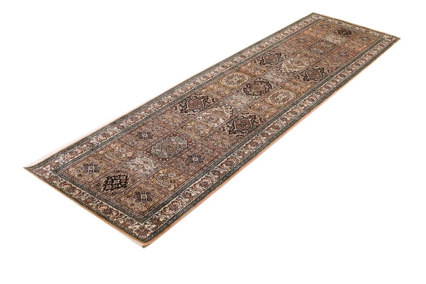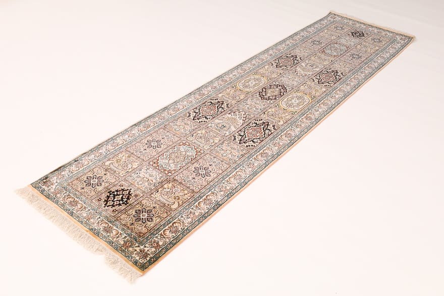 Exquisiter Kaschmir-Seidenteppich 304×81 cm mit Blumenmotiv, handgeknüpft