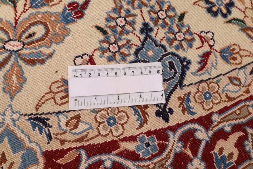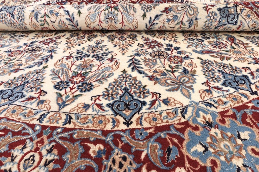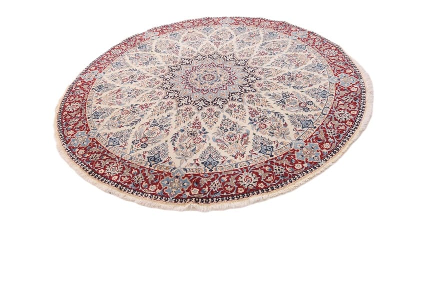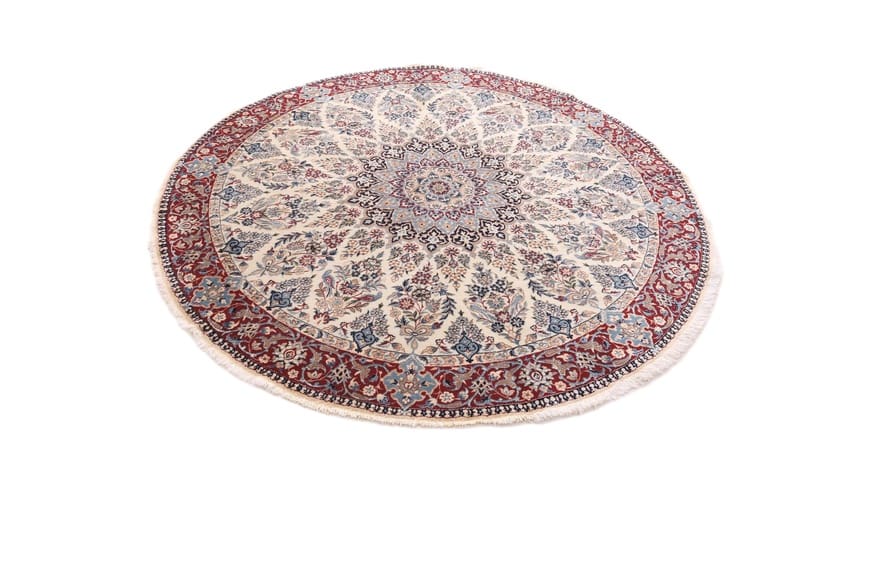 Nain 9 La Teppich | Knotendichte: 360.000 Knoten/m² | Material: Wolle und Seide | Größe: 202×201 cm | Farbe: Elfenbein mit floralen Mustern | Herkunft: Iran/Persien | Zustand: Neuzeitlich (0-20 Jahre) | Verarbeitung: Handgeknüpft | Gewicht: ca. 10 kg