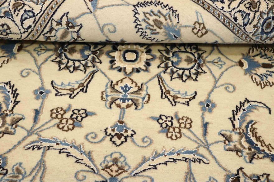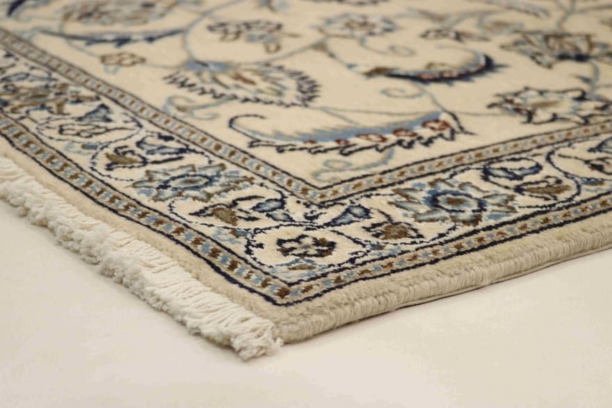 12-lagiger Nain-Teppich | Knotendichte: über 200.000 Knoten/m² | Material: Handgesponnene Wolle und Naturseide | Größe: 200×120 cm | Farbe: Weiß/Beige | Zustand: Neu | Verarbeitung: Handgeknüpft | Ursprung: Iran / Persien