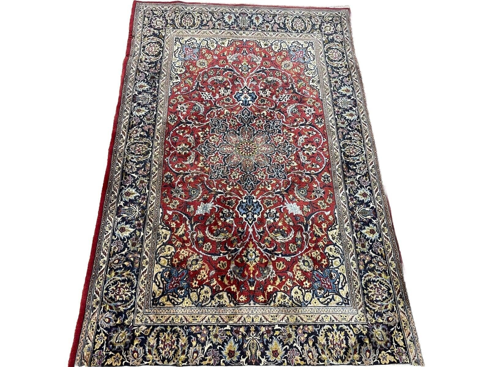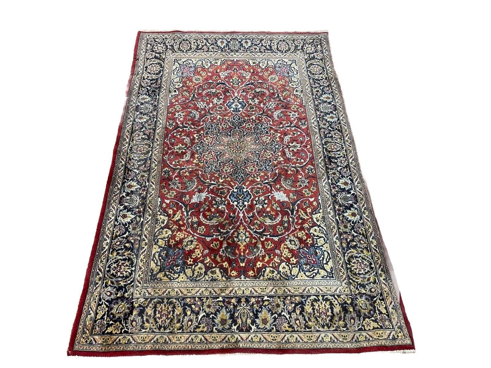 Feiner Perserteppich Esfahan | Handgeknüpft | Knotendichte: ca. 550.000 Knoten/m² | Material: Wolle mit Seide | Größe: 150×100 cm | Zustand: Gebraucht, sehr gut | Farbe: Alt Rot | Stil: Traditionell Orientalisch/Persisch | Florhöhe: 0,5 cm | Muster: Orientalisch | Region: Nain