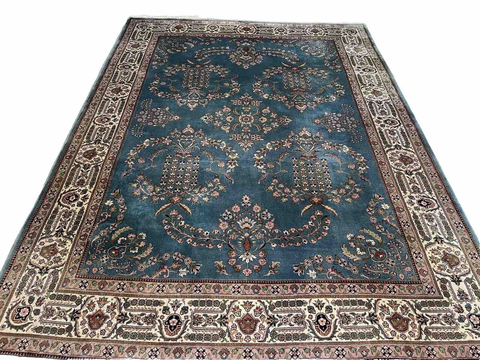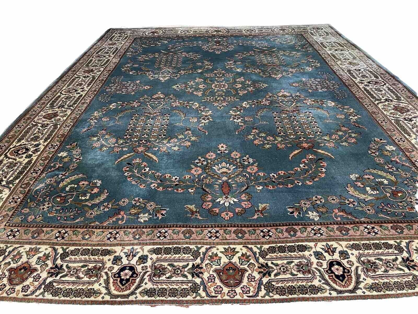 Feinste handgeknüpfte Tabriz Kaschmir Teppich | Knotendichte: 500.000 Knoten/m² | Material: 100% Schurwolle | Größe: 335 x 250 cm | Florhöhe: 10 mm | Muster: Orientalisch mit modernem Blumenmotiv in Blau Petrol | Zustand: Neu mit Etikett | Ursprungsregion: Kashmir | Stil: Klassisch | Form: Rechteckig | Designklassiker: Ja