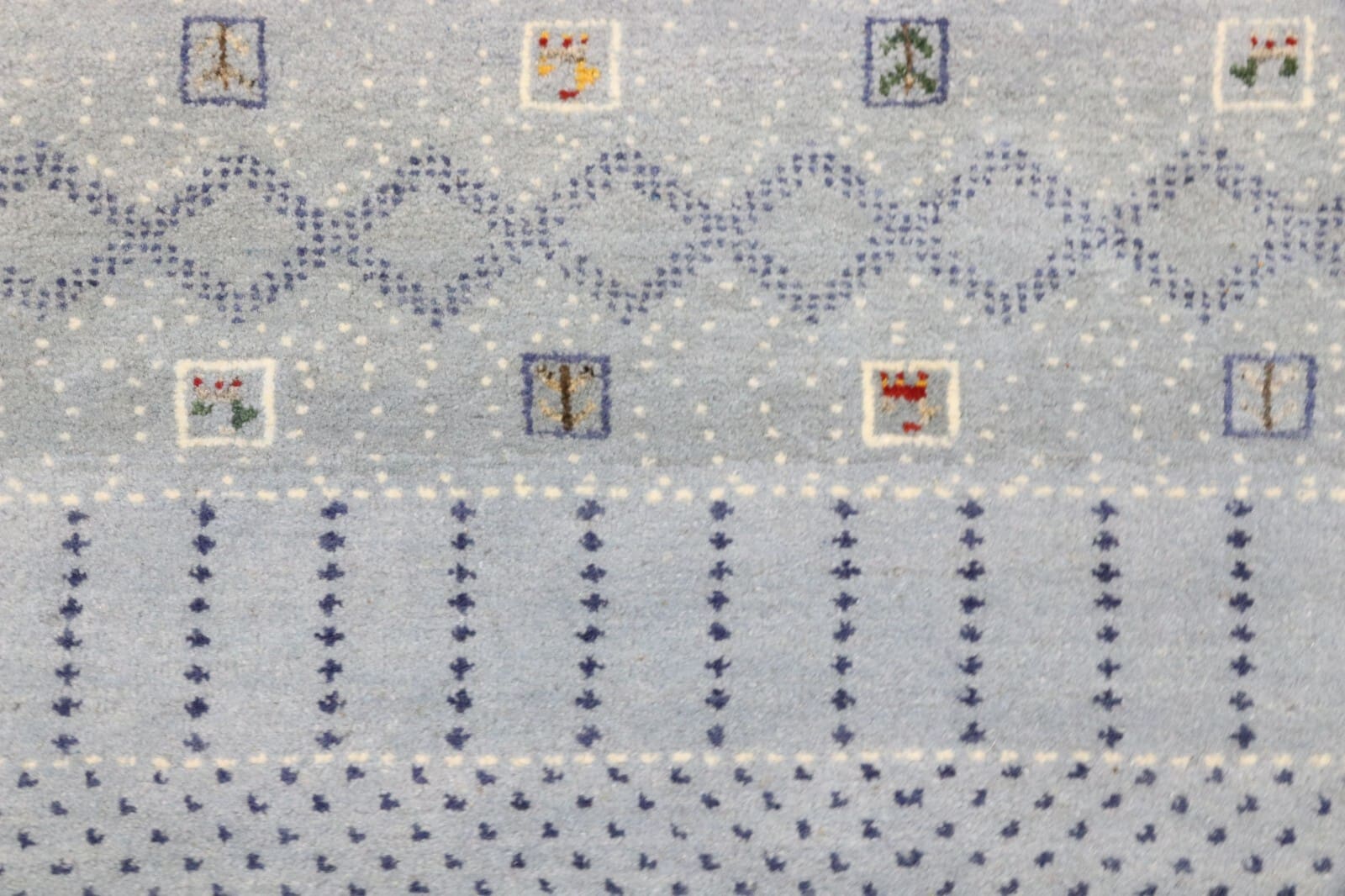 Dieser Teppich entstammt der reichen Tradition der Orientteppiche, die vor allem in Regionen wie dem Iran, dem Kaukasus und Anatolien tief verwurzelt ist. Dabei ist der Gabbeh eine spezielle Art von Teppich, der oft in der Provinz Fars im Iran hergestellt wird. Die Tradition des Gabbeh-Weberns geht auf die nomadischen Stämme der Region zurück, die ihre Teppiche oft mit alltäglichen Motiven und symbolischen Darstellungen schmückten, die ihren Lebensstil und ihre Umgebung reflektieren.