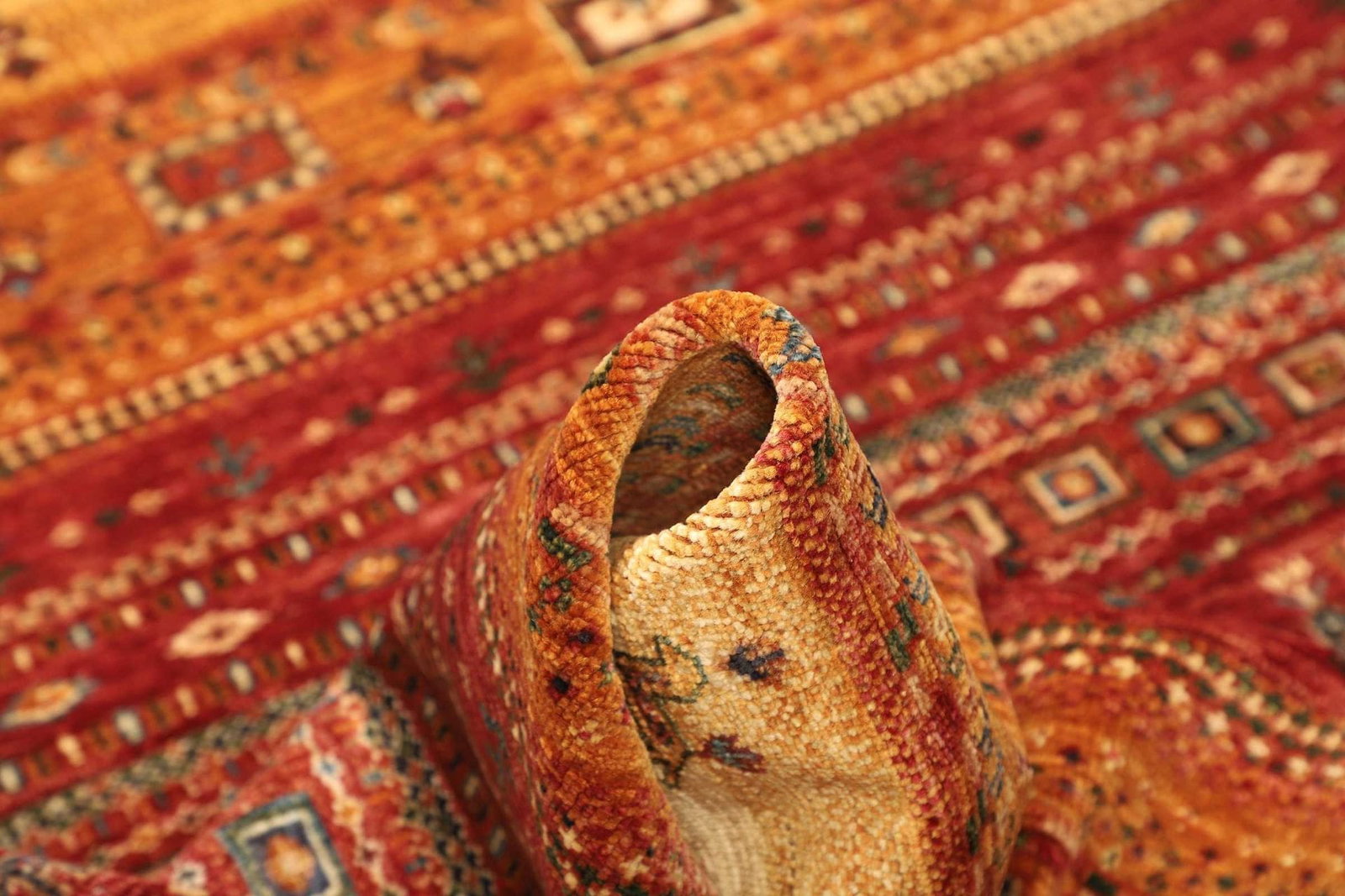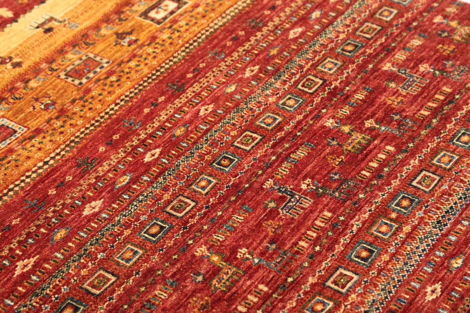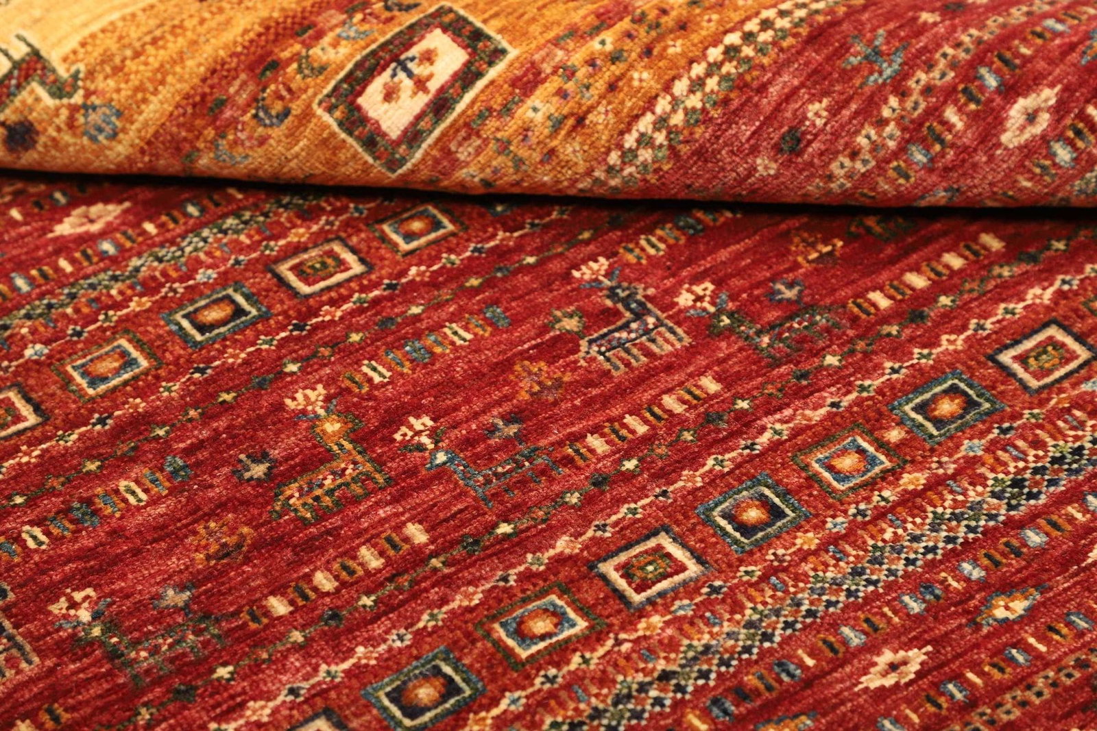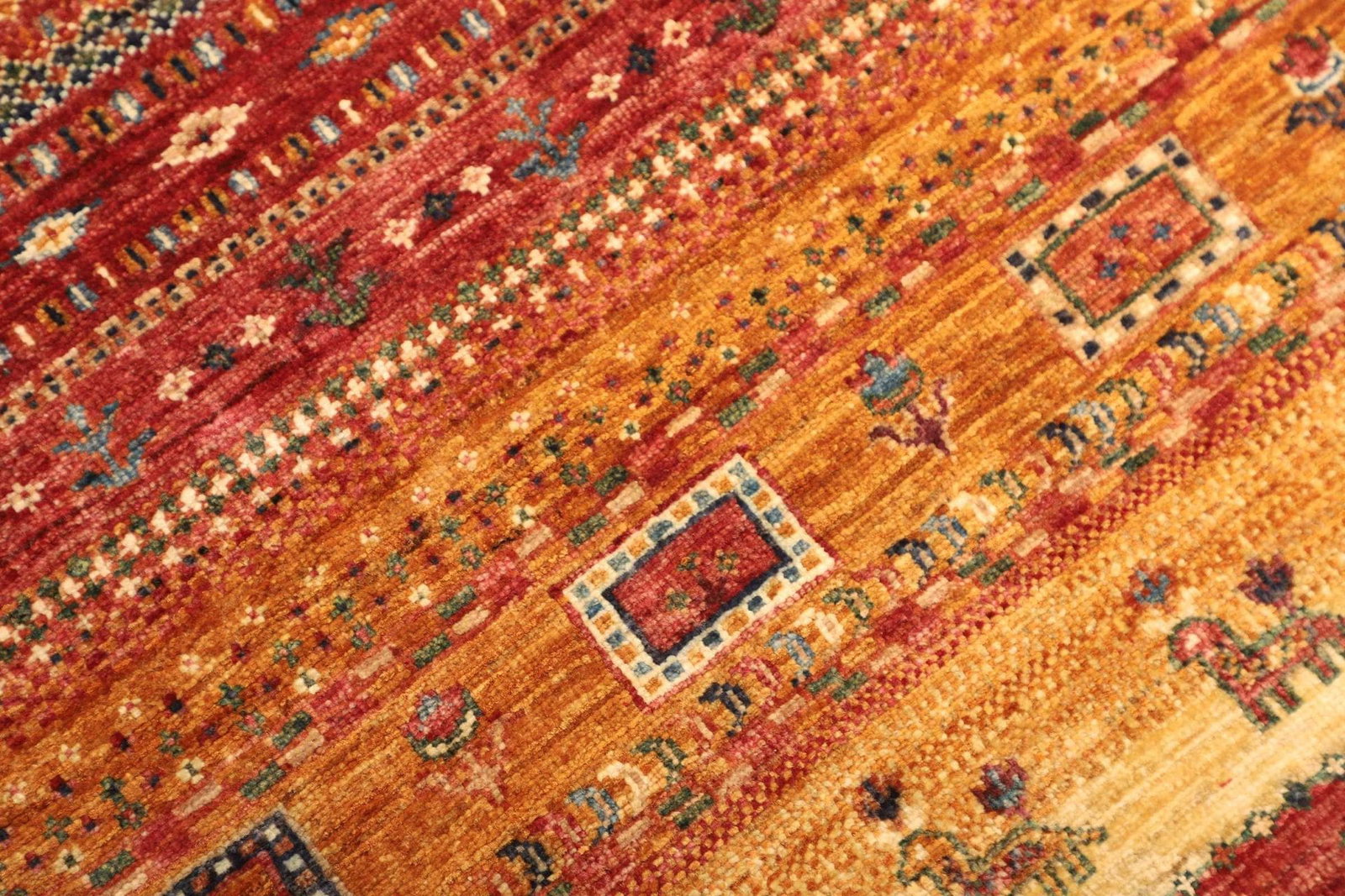 Ein hervorragendes Merkmal dieses Gabbeh Teppichs ist seine Vielseitigkeit und die einfache Pflege. Wolle hat die Eigenschaft, Schmutz und Flecken weniger leicht aufzunehmen, was die Reinigung erleichtert—ideal für stark frequentierte Bereiche wie Wohn- oder Esszimmer. Außerdem fühlt sich der Teppich bei Kontakt angenehm an und trägt zur Gemütlichkeit und Wärme eines Raumes bei.