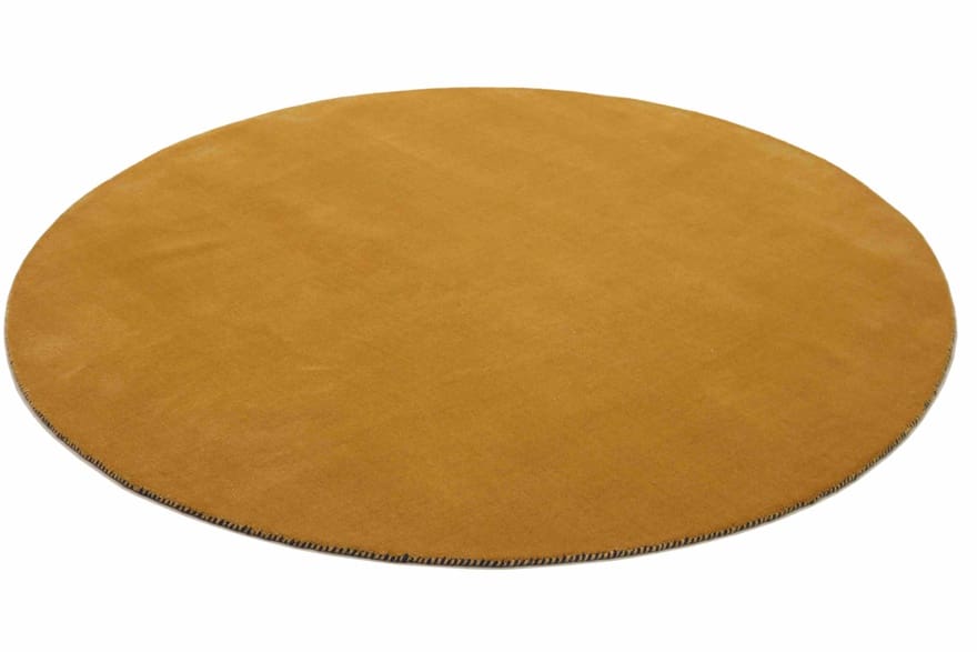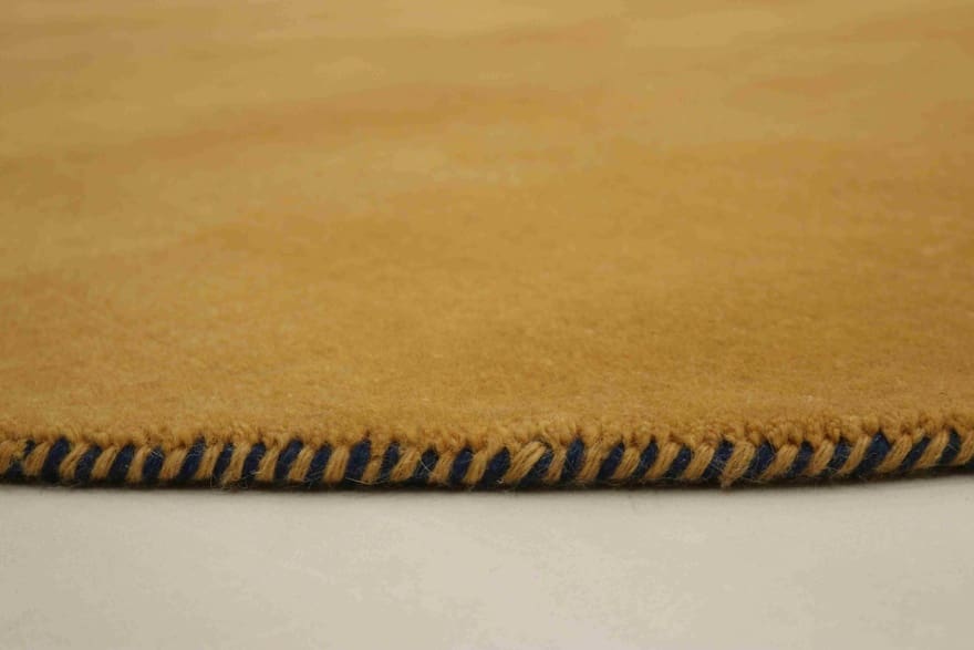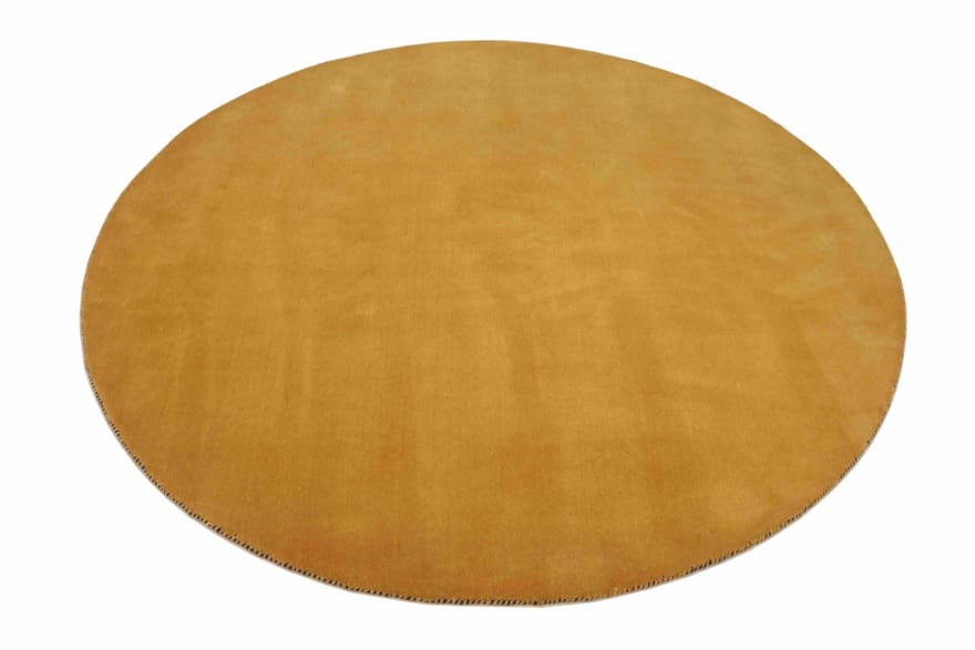 Runder Gabbeh-Teppich | Knotendichte: 90.000 Knoten/m² | Material: Handgesponnene Wolle und Baumwollkette | Größe: 150×149 cm | Zustand: Neu | Ursprung: Indien | Dicke: ca. 10 mm | Gewicht: ca. 5 kg