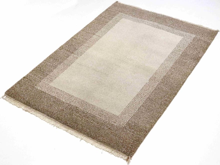 Hochwertiger Gabbeh Teppich | Knotendichte: 160.000 – 200.000 Knoten/m² | Material: Wolle und Baumwolle | Größe: 185×123 cm | In neuem Zustand | Ursprung: Indien | Verarbeitung: Handgeknüpft | Farbe: Weiß/Beige | Dicke: ca. 10 mm | Gewicht: ca. 6 kg | Muster: Geometrisch und kleine Formen