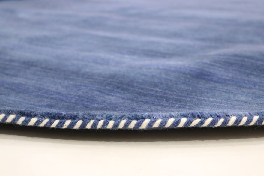 Runder Gabbeh Teppich | Knotendichte: 128.000 – 160.000 Knoten/m² | Material: Wolle (Flor), Baumwolle (Kette) | Größe: 201×200 cm | Farbe: Blau/Türkis | Zustand: Neu | Ursprung: Indien | Dicke: ca. 10 mm | Gewicht: ca. 10 kg