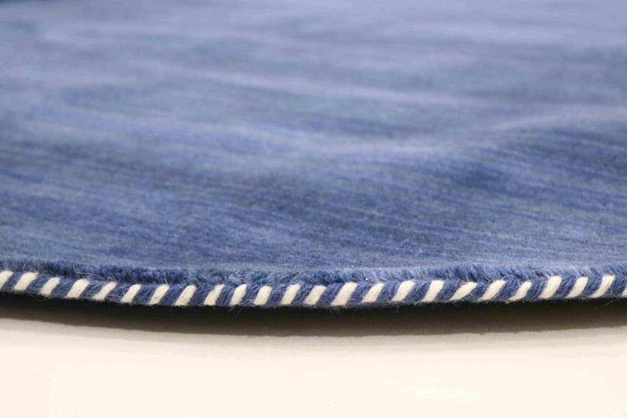 Runder GABBEH Teppich | Knotendichte: 90.000 Knoten/m² | Material: Handgesponnene Wolle und Baumwolle | Größe: 205×204 cm | Farbe: Blau/Türkis | Zustand: Neu | Herkunft: Indien | Verarbeitung: Loomgeknüpft | Dicke: ca. 10 mm | Gewicht: ca. 6 kg