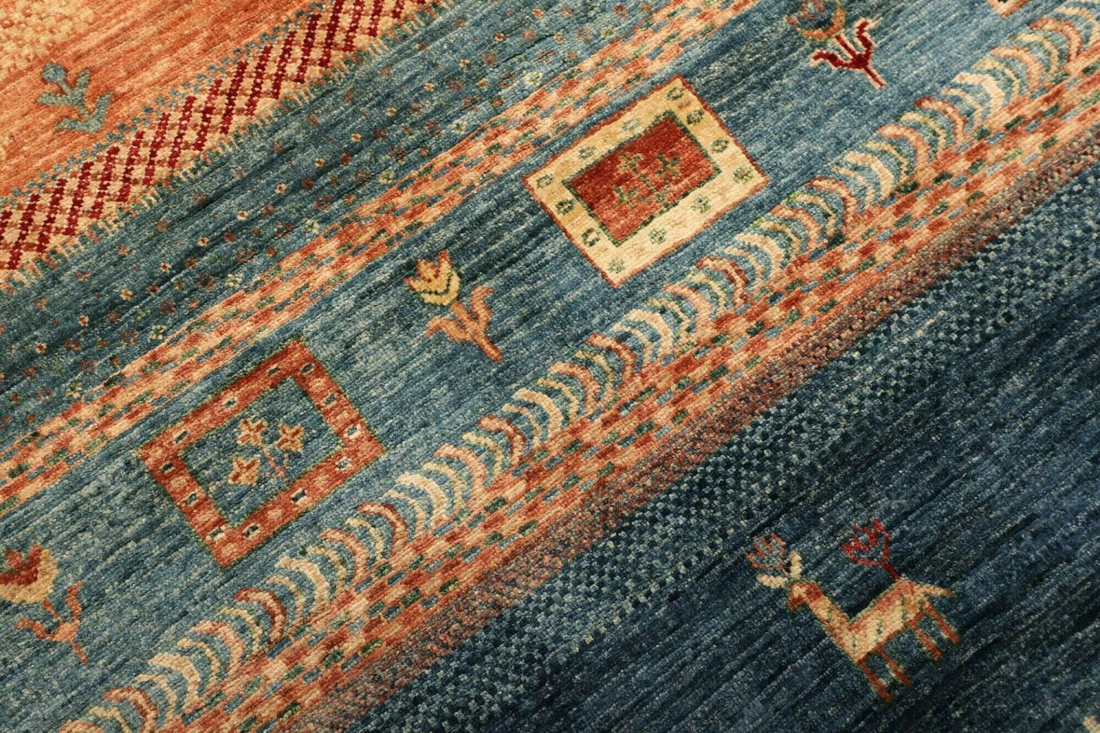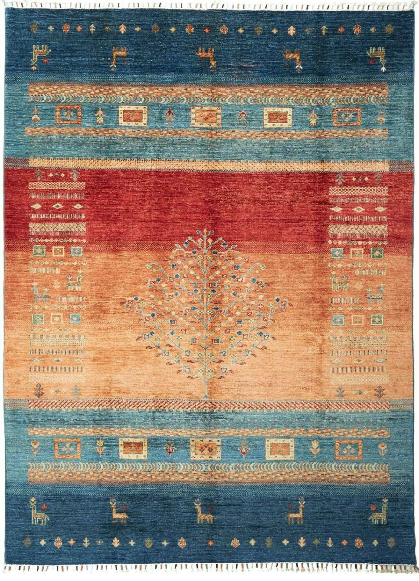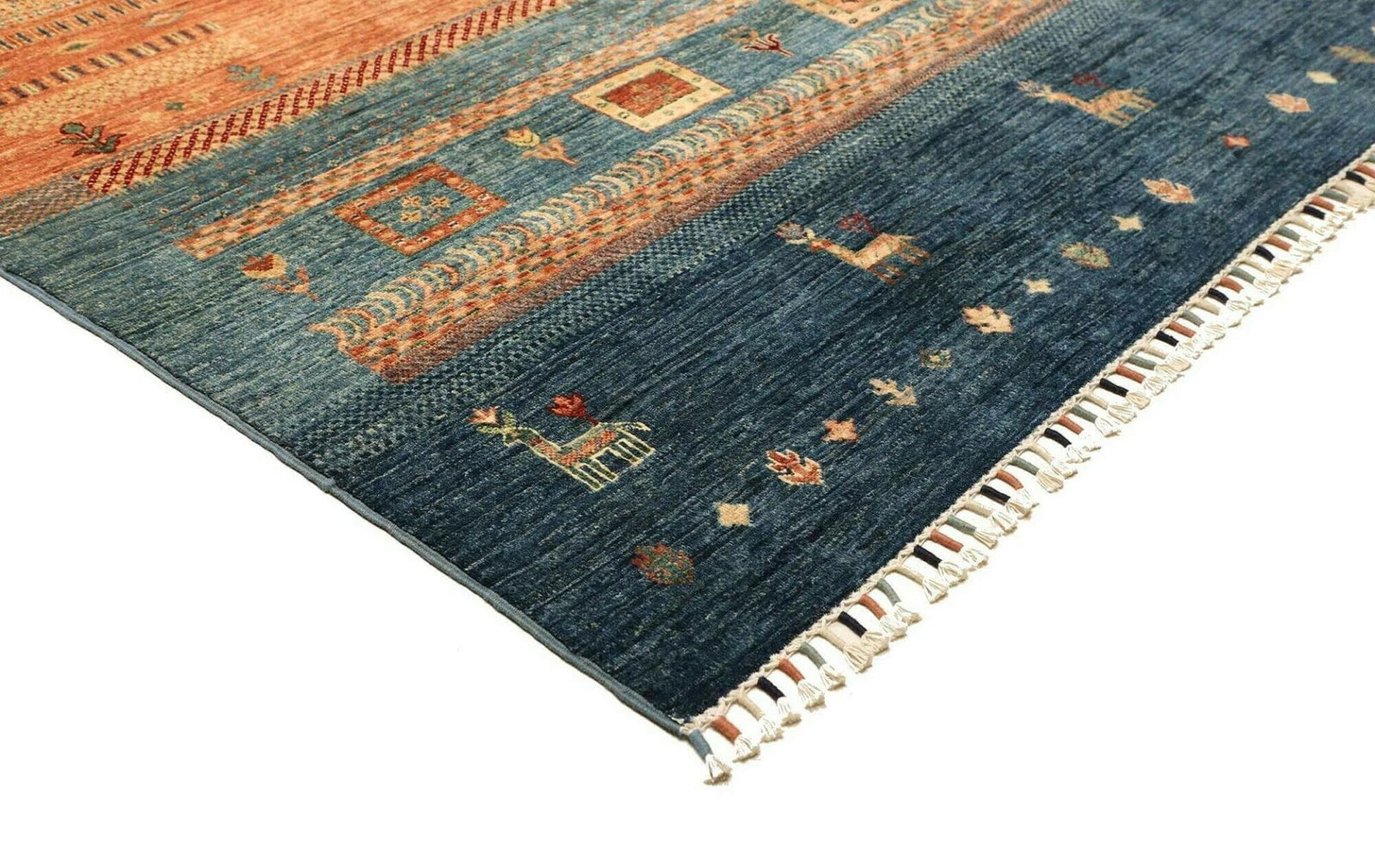 Gabbeh Teppich | Knotendichte: ca. 200.000 Knoten/m² | Flor: 100% Schurwolle | Kette: 100% Baumwolle | Größe: 213 x 284 cm | Herkunft: Pakistan | Zustand: Handgewebte Qualität, sehr gut erhalten