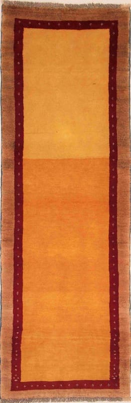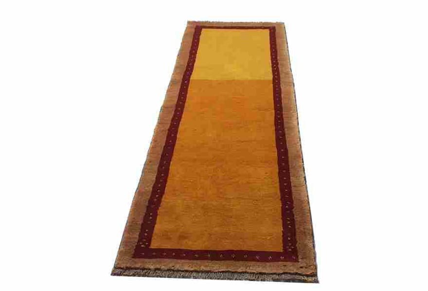 Gabbeh Teppich | Knotendichte: 90.000 Knoten/m² | Material: Handgeknüpfte Wolle | Größe: 234×80 cm | Farbe: Braun/Gelb | Zustand: Neu | Herkunft: Iran/Persien | Dicke: ca. 10 mm | Gewicht: ca. 6 kg