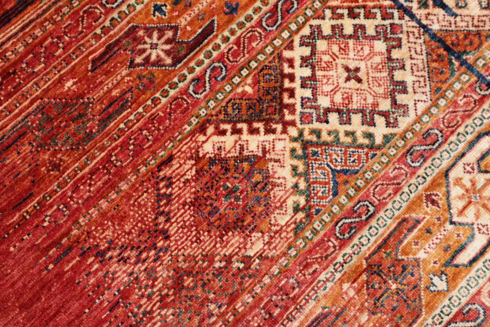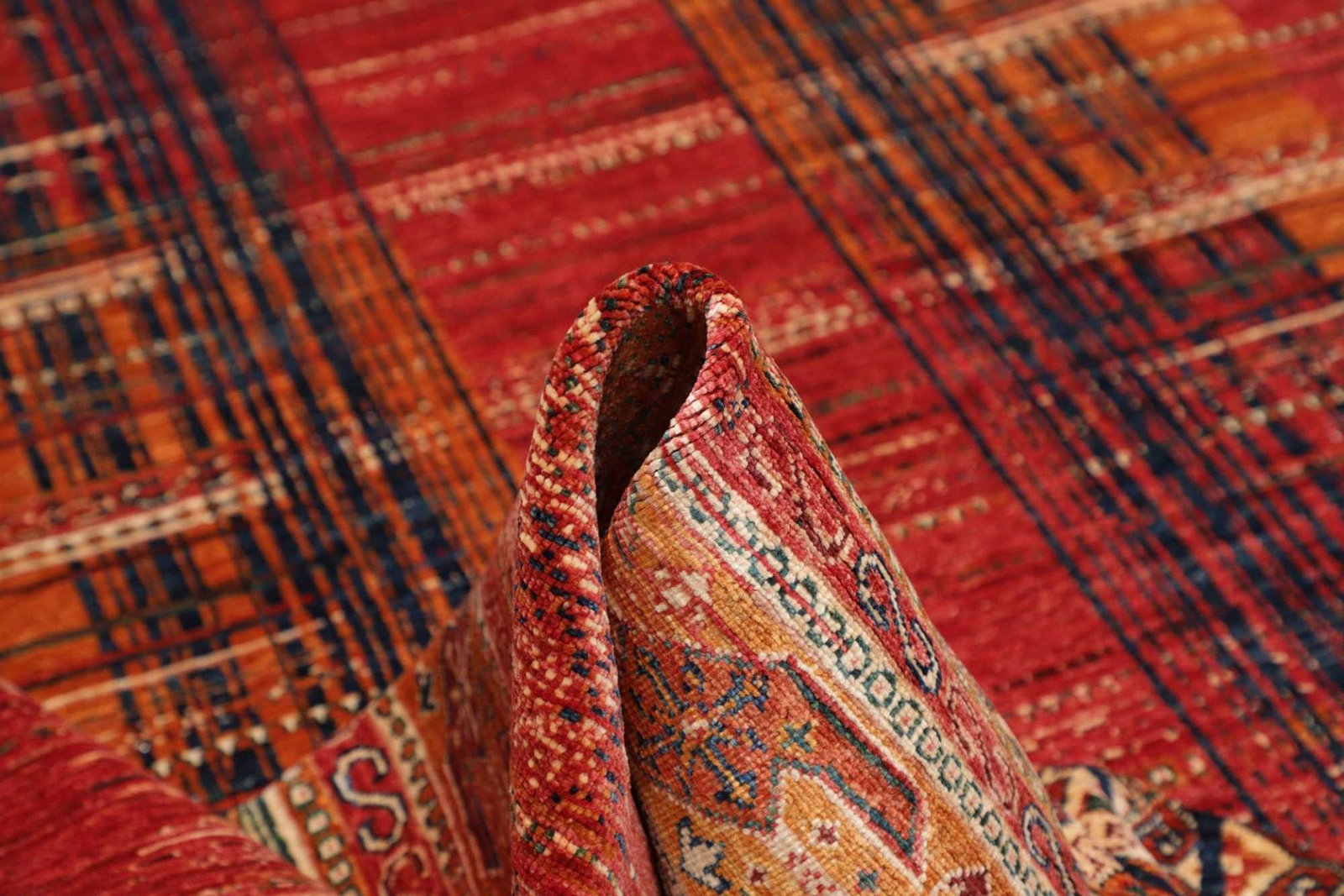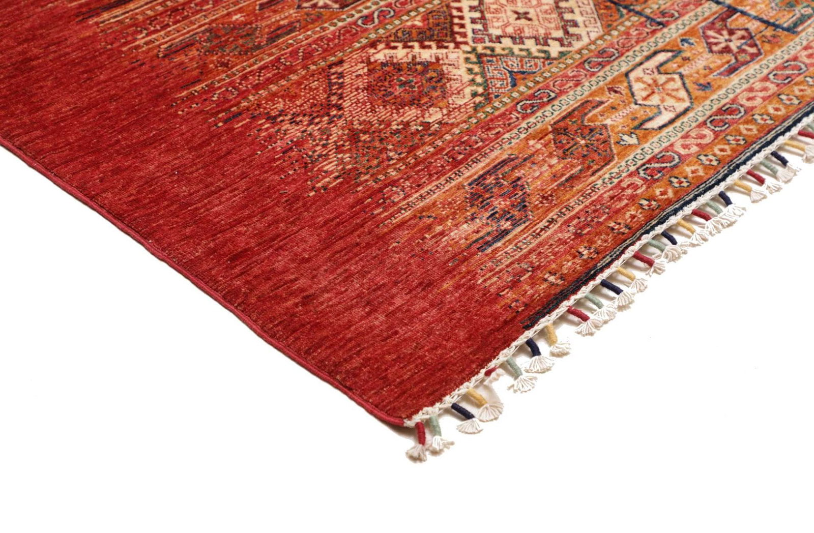 Die Farben des Teppichs sind natürlich und variieren von sanften Erdtönen bis hin zu kräftigen Akzenten. Diese Farbpalette sorgt dafür, dass der Teppich sowohl in modernen als auch in traditionell eingerichteten Wohnräumen hervorragend zur Geltung kommt.