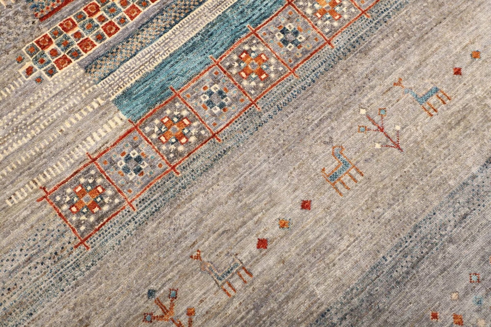 Gabbeh Teppich | Knotendichte: ca. 200.000 Knoten/m² | Material: 100% Schurwolle | Größe: 247×303 cm | Herkunft: Pakistan | Zustand: Handgewebte Qualität | Höhe: ca. 5-7 mm | Kette: 100% Baumwolle