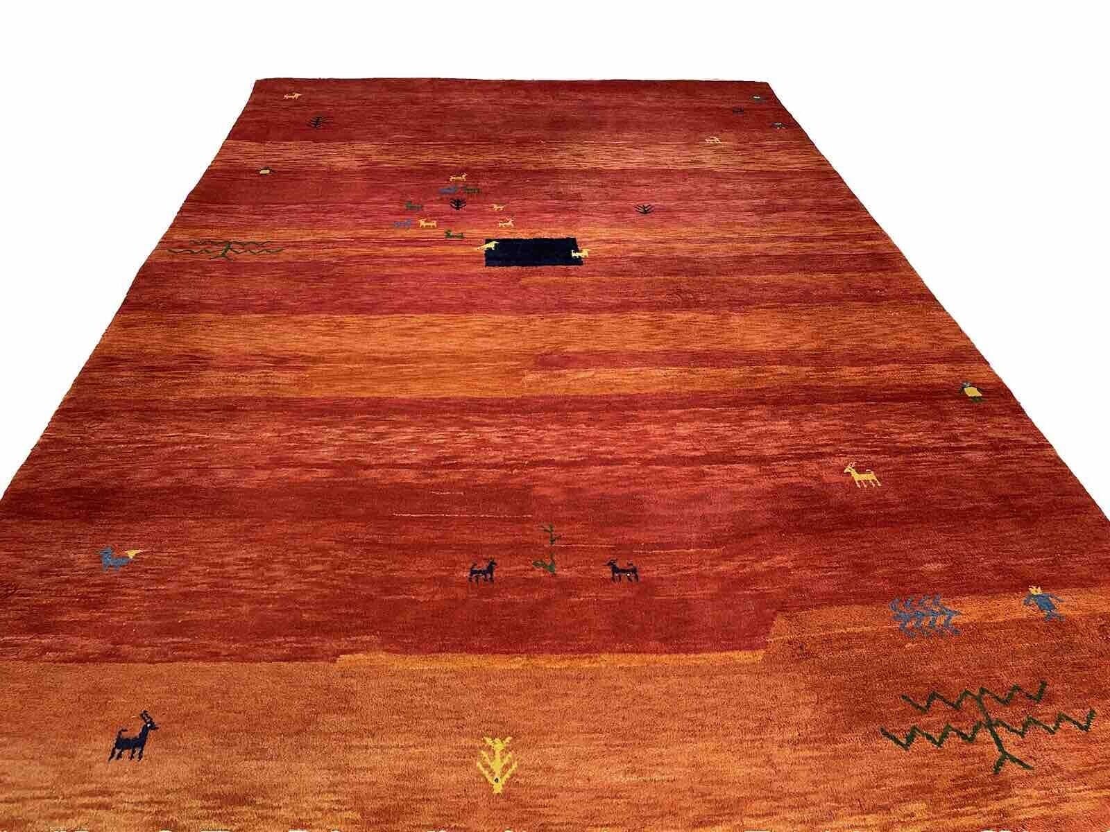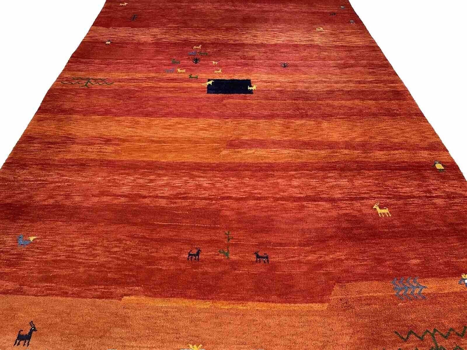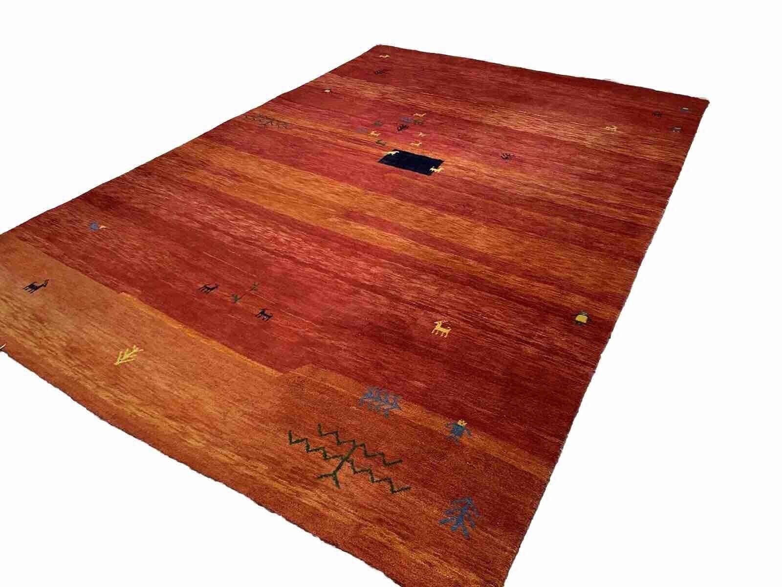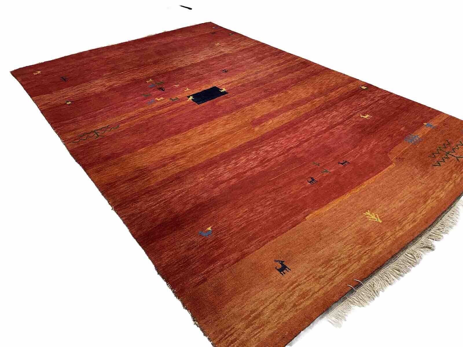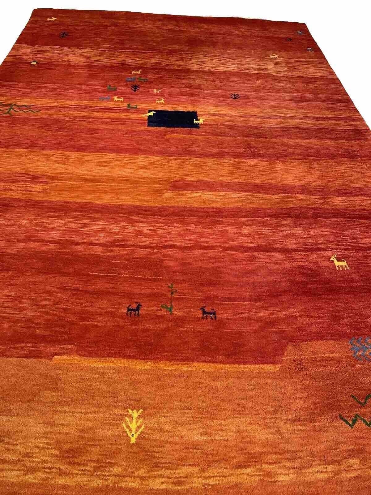 Handgeknüpfter Gabbeh-Teppich | Größe: 250 x 350 cm | Florhöhe: 24 mm | Material: 100% Wolle | Farbe: Warmes Rot-Orange | Zustand: Neu mit Etikett | Modernes Design, geeignet für Fußbodenheizungen | Rechteckige Form | Hochflorig | Kettfaden aus Baumwolle | Ideal für Schlaf-, Wohn- und Arbeitszimmer
