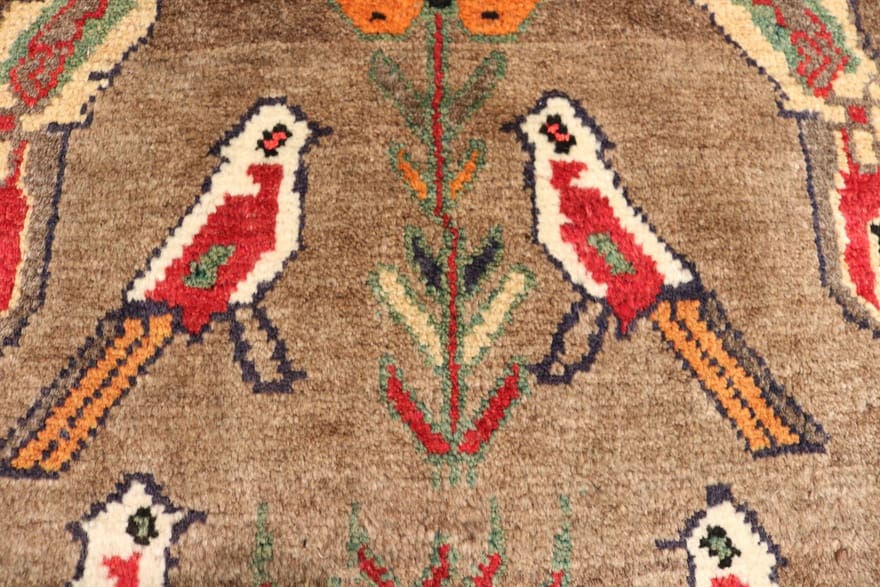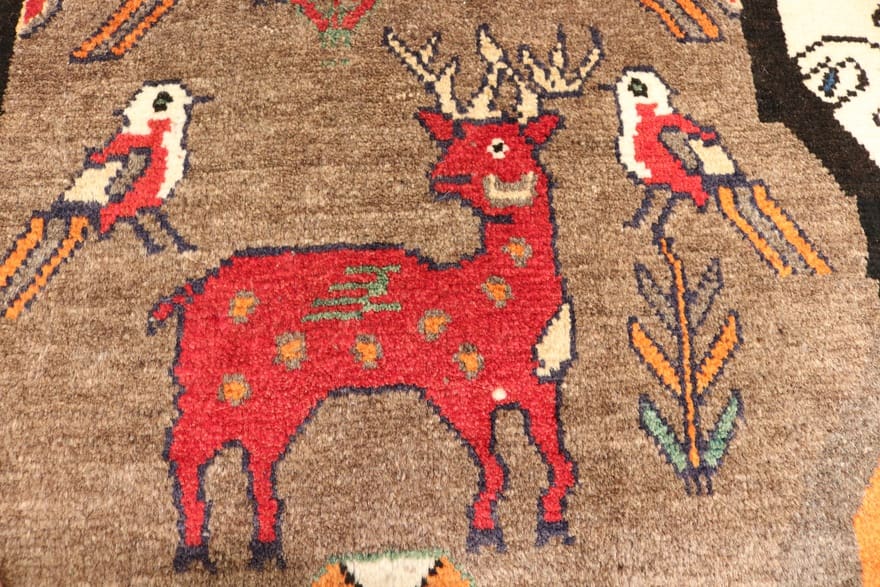 Die Ghashghai sind eine nomadische Volksgruppe im Iran, die für ihre reiche Teppichknüpftradition bekannt ist. Sie leben vorwiegend in der schmalen Strecke zwischen Shiraz und dem Zagros-Gebirge. Ihre Teppiche zeichnen sich durch lebhafte Farben und geometrische Muster aus, die oft Geschichten und Mythen der nomadischen Kultur widerspiegeln. Die Region ist nicht nur für ihre Teppiche, sondern auch für die reiche Flora und Fauna bekannt, die die Wolle der Tiere beeinflusst – die Farben des Teppichs sind daher oft von der Natur inspiriert.